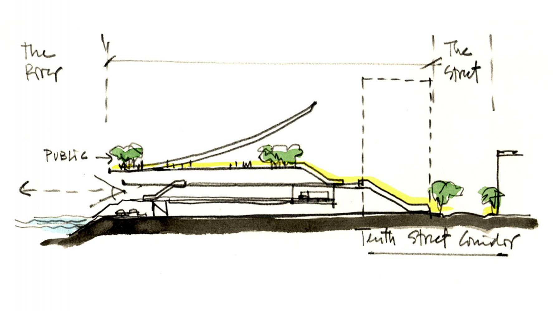 Ampliando la esfera pública del centro de Pittsburgh, el edifcio cuenta con una terraza pública en la azotea con vistas panorámicas del centro y del río Allegheny, así como con un acceso peatonal desde la calle que pasa por debajo del primer piso del edificio atravesando una fuente de 46,5 metros de largo que conduce hasta el parque de la ribera.