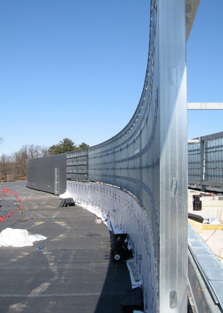 Constructed in a prominent, central campus location, the design solution for this program paid close attention to site planning, as well as, spatial composition to encourage student-faculty interaction in informal spaces. Conceived for its context, the Center is a gently curving metal-clad structure set low to the ground in a clearing. Cantilevered over an axis generated by the campus walk, the building establishes a visual connection with the heart of the College grounds and allows the path to continue. Respectful of its natural environment, it is both multifunctional and inspirational.