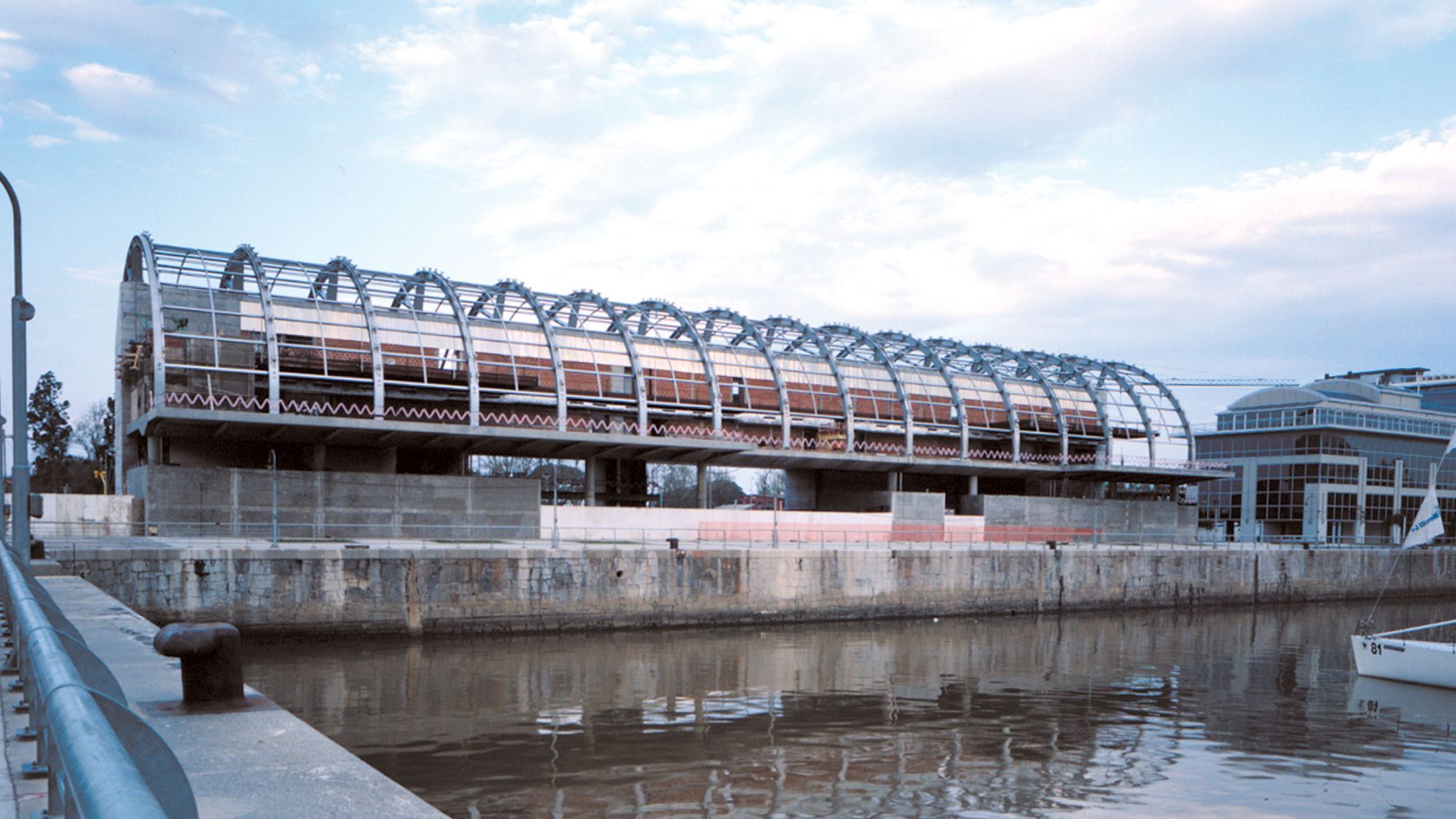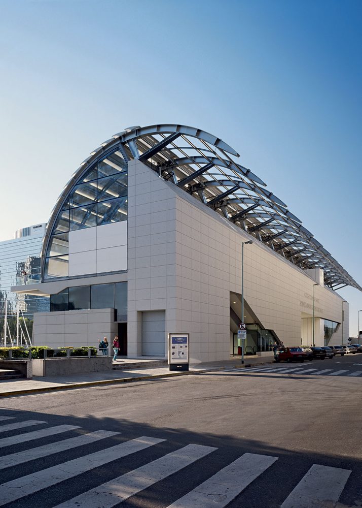在布宜诺斯艾利斯历史悠久的马德罗港附近,独特可操作的遮阳设备控制着白天进入桶形拱形廊道的光线,并在日落后将画廊展示给城市。