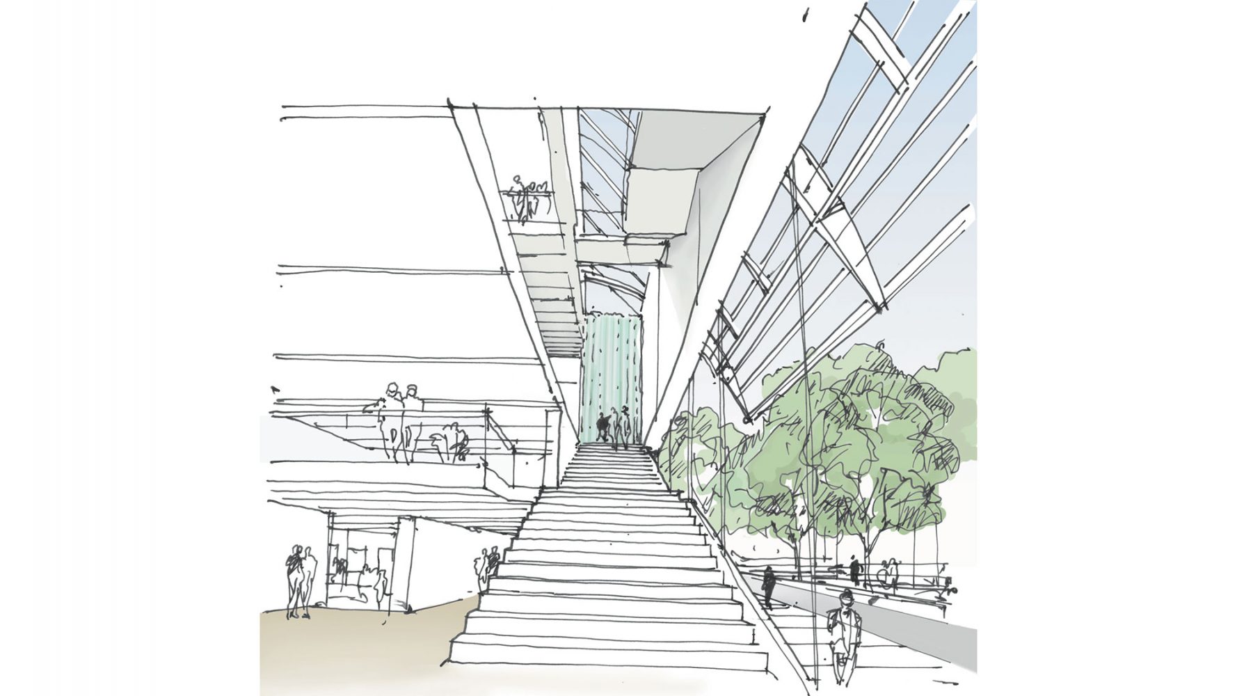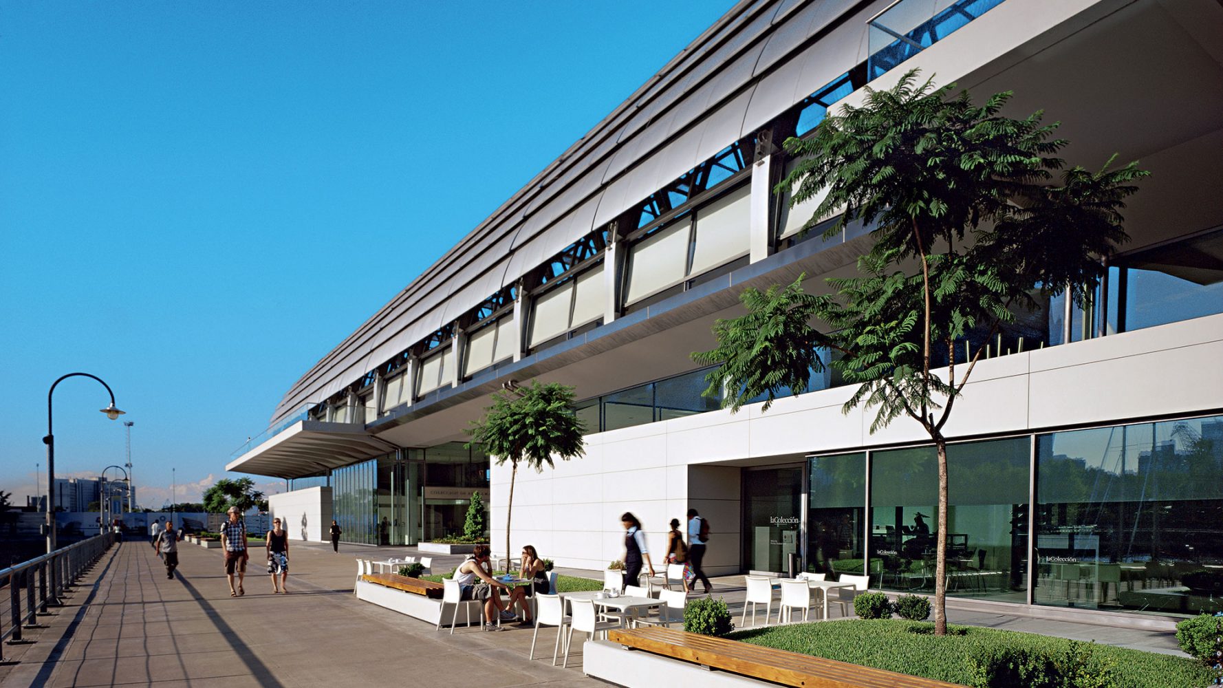 游客通过一个双层高的大堂进入,远离地面层的通风廊。一个咖啡馆位于主入口的通廊对面:可从博物馆的露天广场和海滨广场分别进入,它将博物馆融入到附近的公共生活之中。两个室外退台将主要展览楼层向外延伸,提供了额外的室外空间和社交场所,同时也提供了布宜诺斯艾利斯市中心的景观。