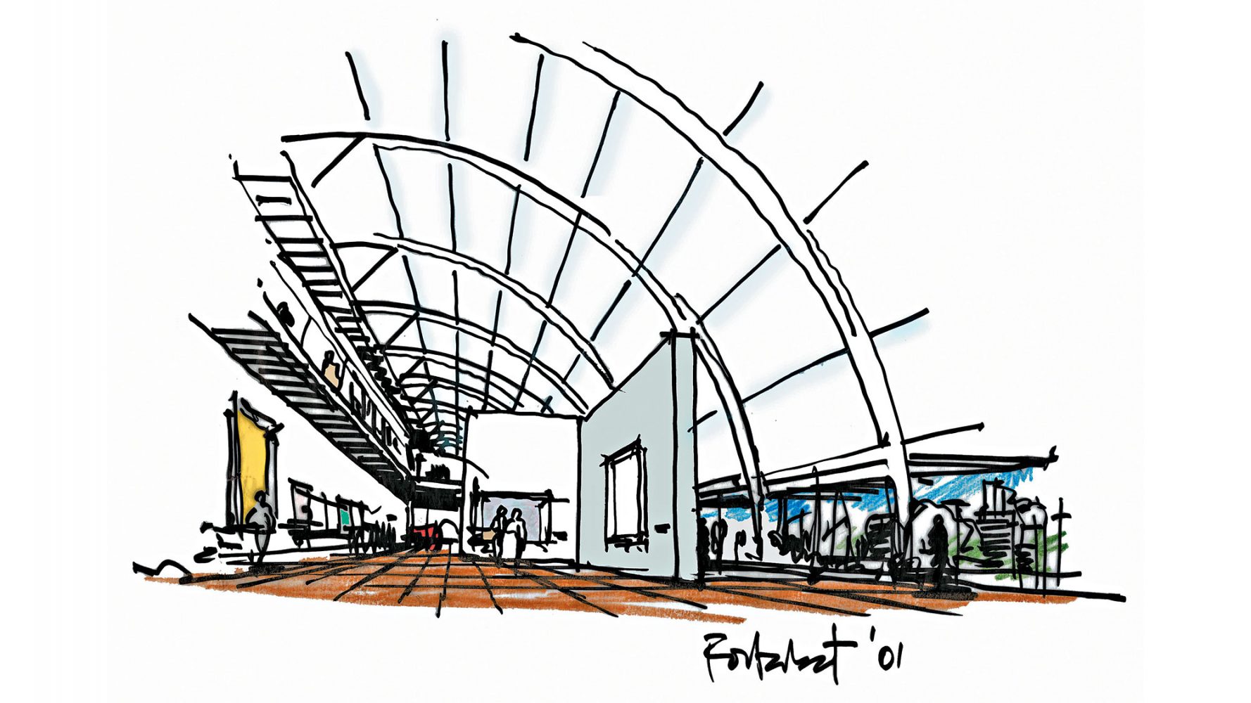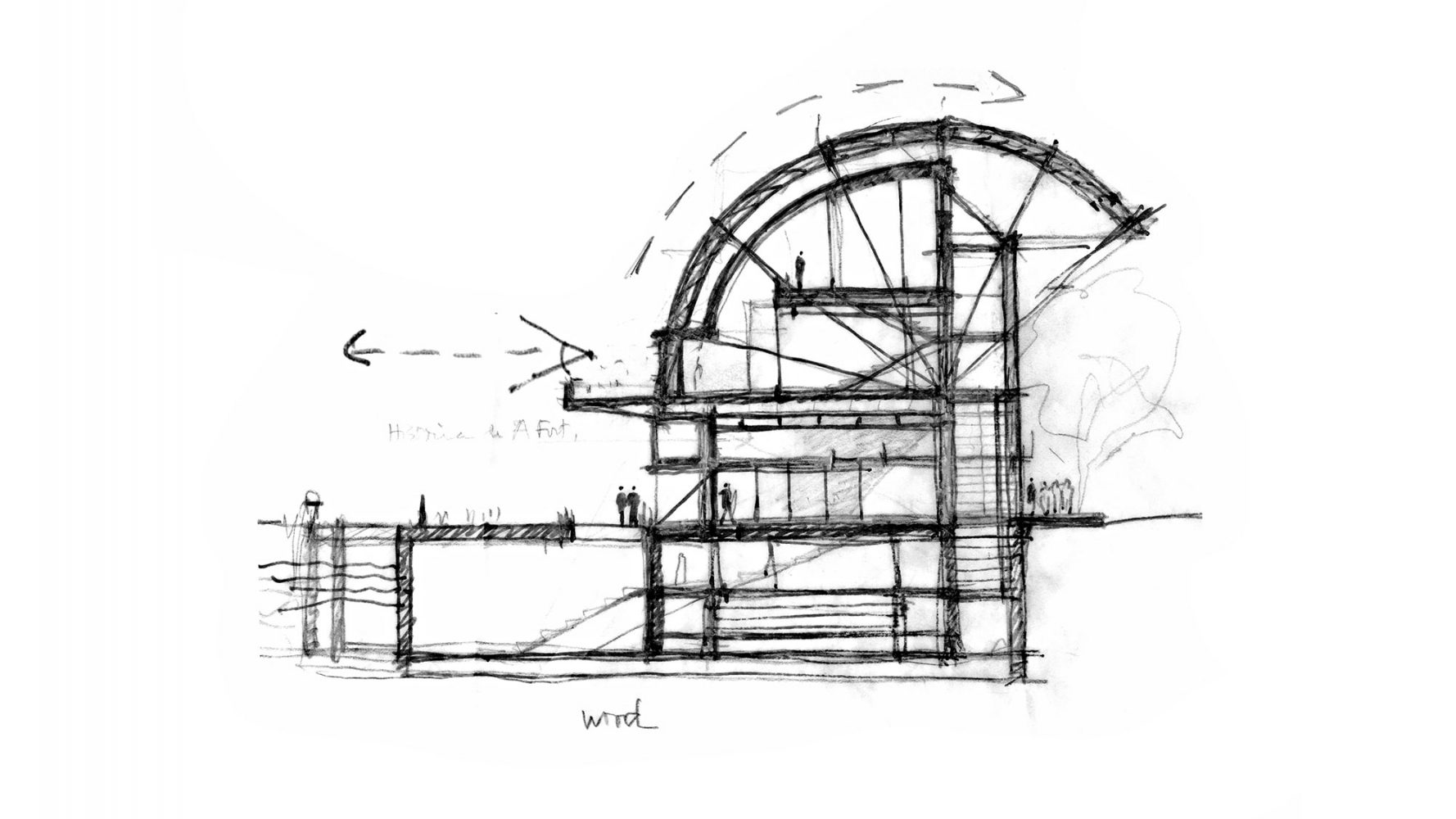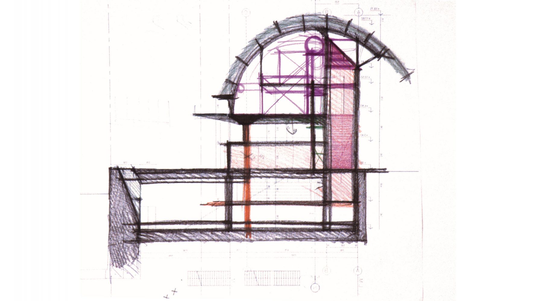 通过可操作的屋顶不仅实现了在市中心的玻璃塔楼和博物馆内部之间的视觉连接,而且在建筑物的远侧的混凝土龙骨让人回想起以前的工业港口。这个体量定义了一个清晰的街道,在顶点提供了一个结构龙骨支撑拱顶,并且包含主要的流线和服务空间,连接了底层及上层的主要画廊、地下室画廊和其下的存储区域。