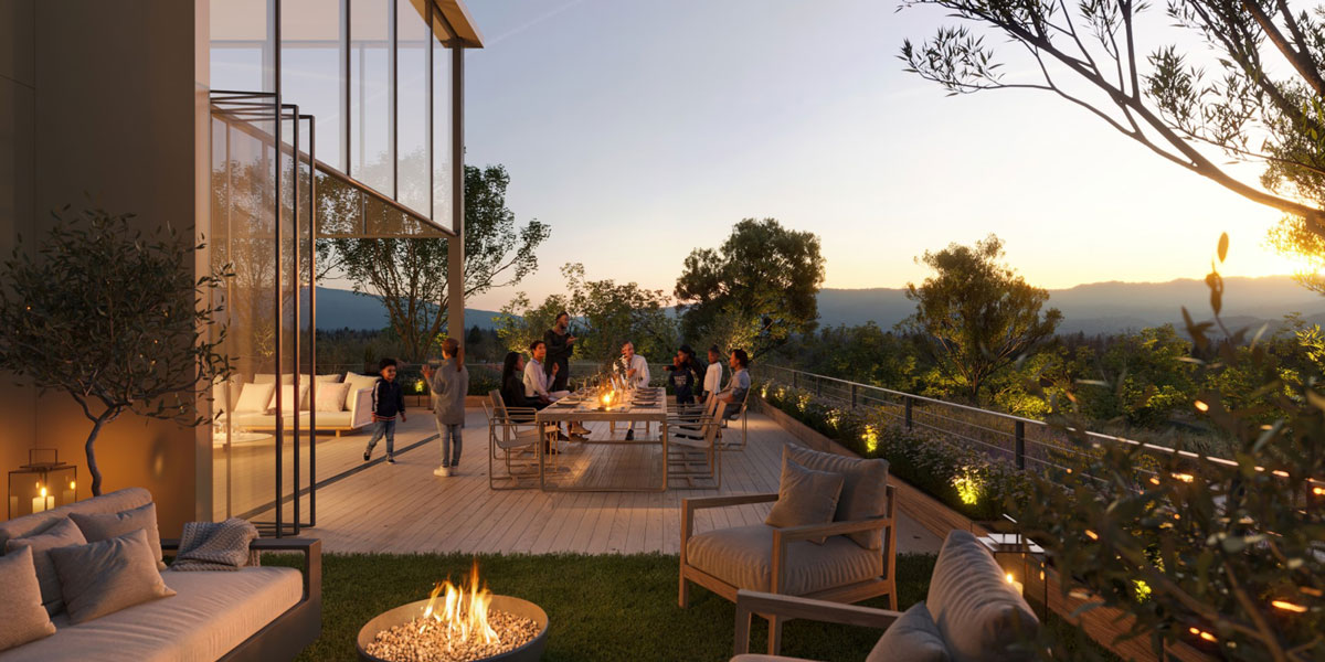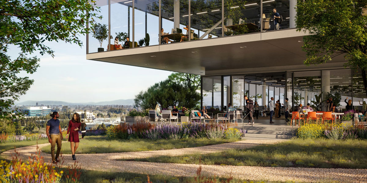 For The Rise in Cupertino, California (previously known as the Vallco Town Center) landscaping, public amenities, residential uses, circulation, and views are layered in an innovative manner to create a unique open space environment rich in variety of experiences.