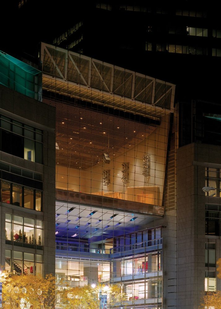 Rafael Viñoly Architects designed the Frederick P. Rose Hall, the new home of Jazz at Lincoln Center, as the world’s largest performance, education, and broadcast facility built specifically for jazz. Located on the fifth floor of Time Warner Center, a multiuse complex on Columbus Circle in Manhattan, New York City, the multiroom, multivenue, highly flexible facility allows new forms of interaction between the audience and musicians and creates a musical experience unique to jazz.