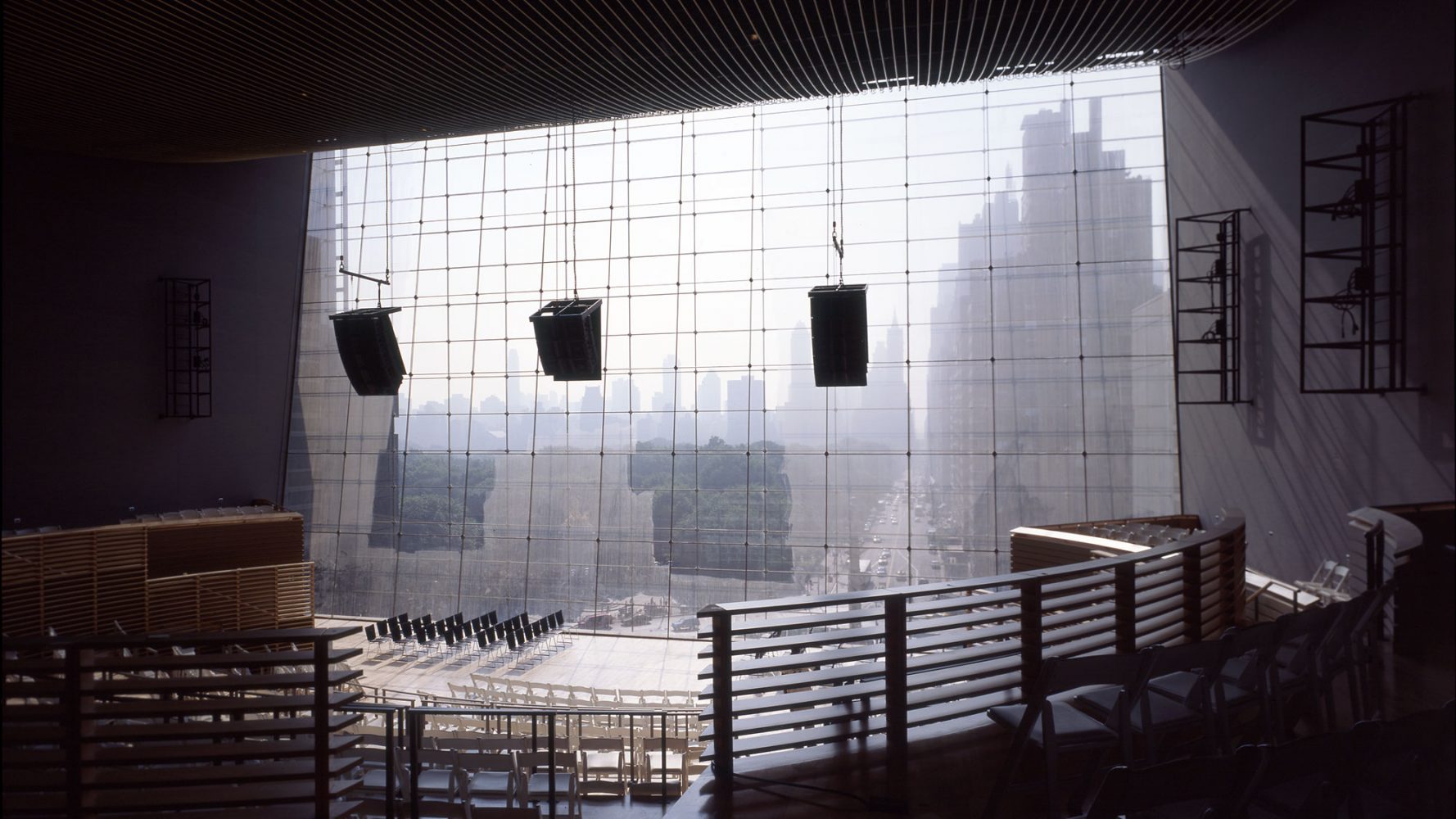 Rose Theater, the largest venue, is a concert space designed for jazz performance, but it can also accommodate opera, dance, theater, film, and orchestral performances as well as lectures and presentation formats. Movable towers, which double as concert seating and elements of the orchestra shell, can create a “theater-in-the-round” and allow for various seating configurations on stage. Adjustable acoustical elements such as the retractable concert ceiling above the stage add to the flexibility of the theater.