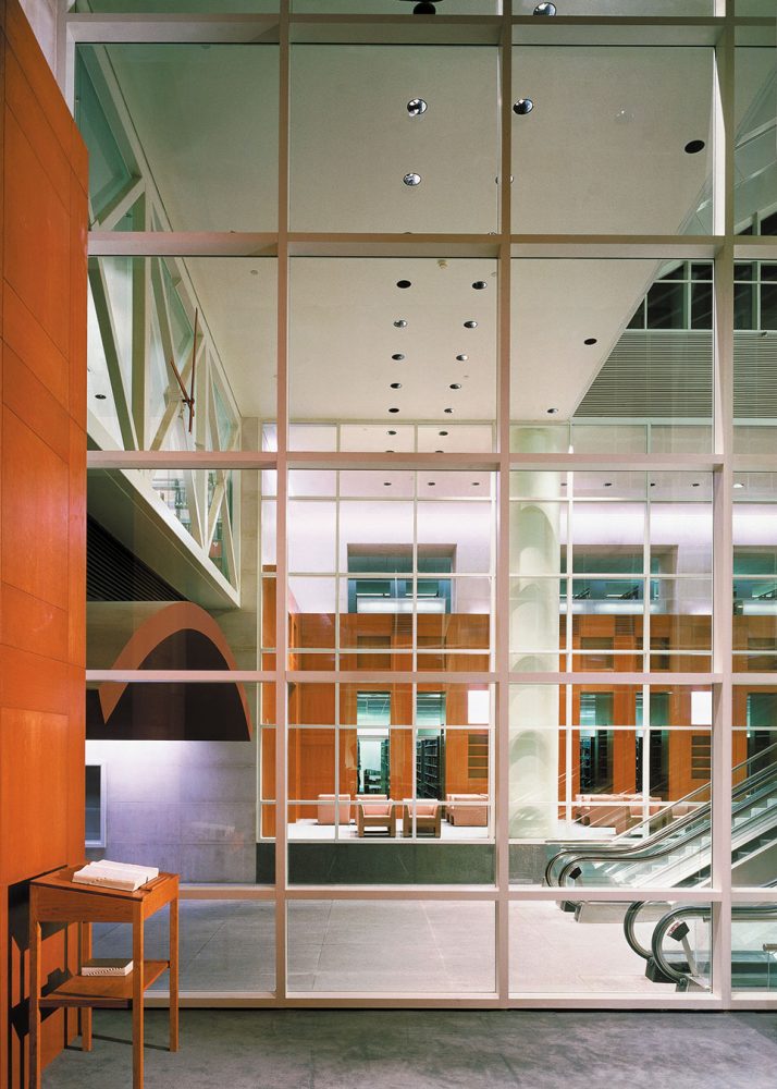 La biblioteca de justicia penal es la pieza central del proyecto. La disposición de la colección alrededor del atrio central en dos niveles destaca la importancia de la biblioteca para la identidad del College. Al entrar en el edificio, los visitantes se encuentran literalmente inmersos en la biblioteca de justicia penal y pueden acceder directamente a todas las áreas del edificio desde este espacio con iluminación natural que reparte luz difusa por el resto del edificio.