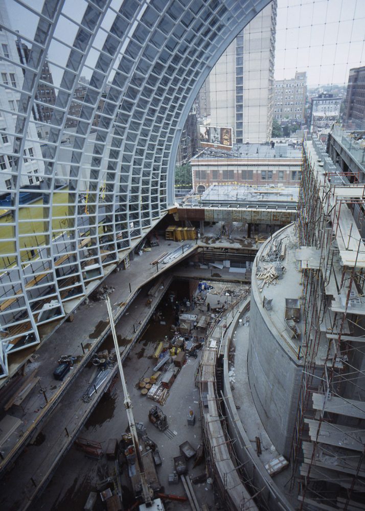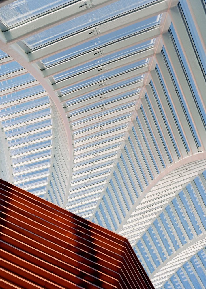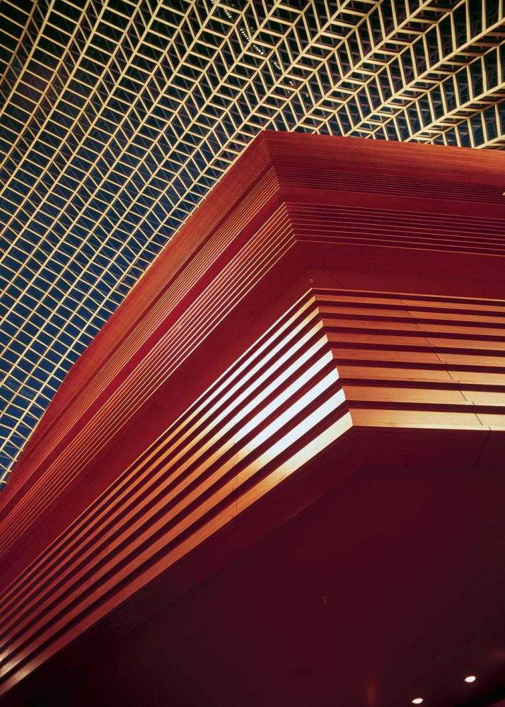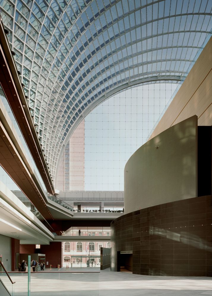 A block-long barrel vault of glass and steel shelters the two volumes that contain the main performance venues of the Center as well as the interstitial spaces that simultaneously serve as an expansive pre-function lobby and as a “Commonwealth Plaza” that serves the public throughout the day.