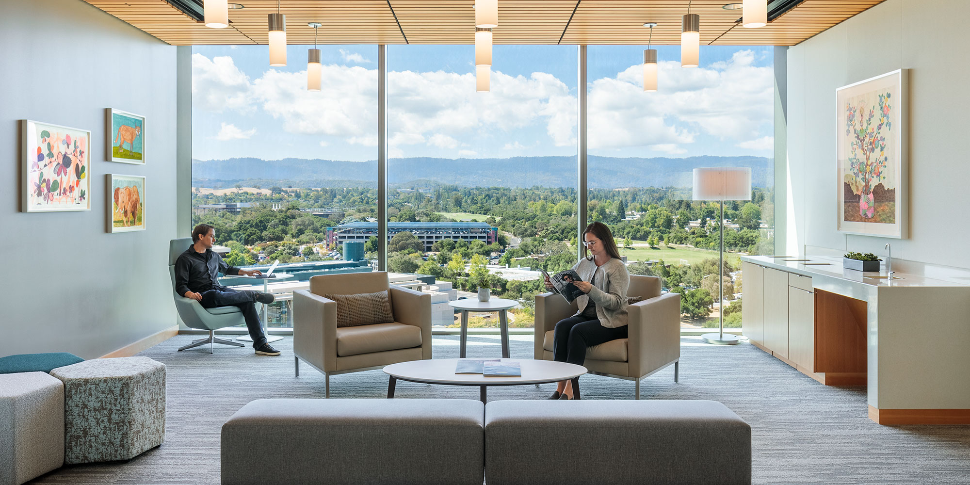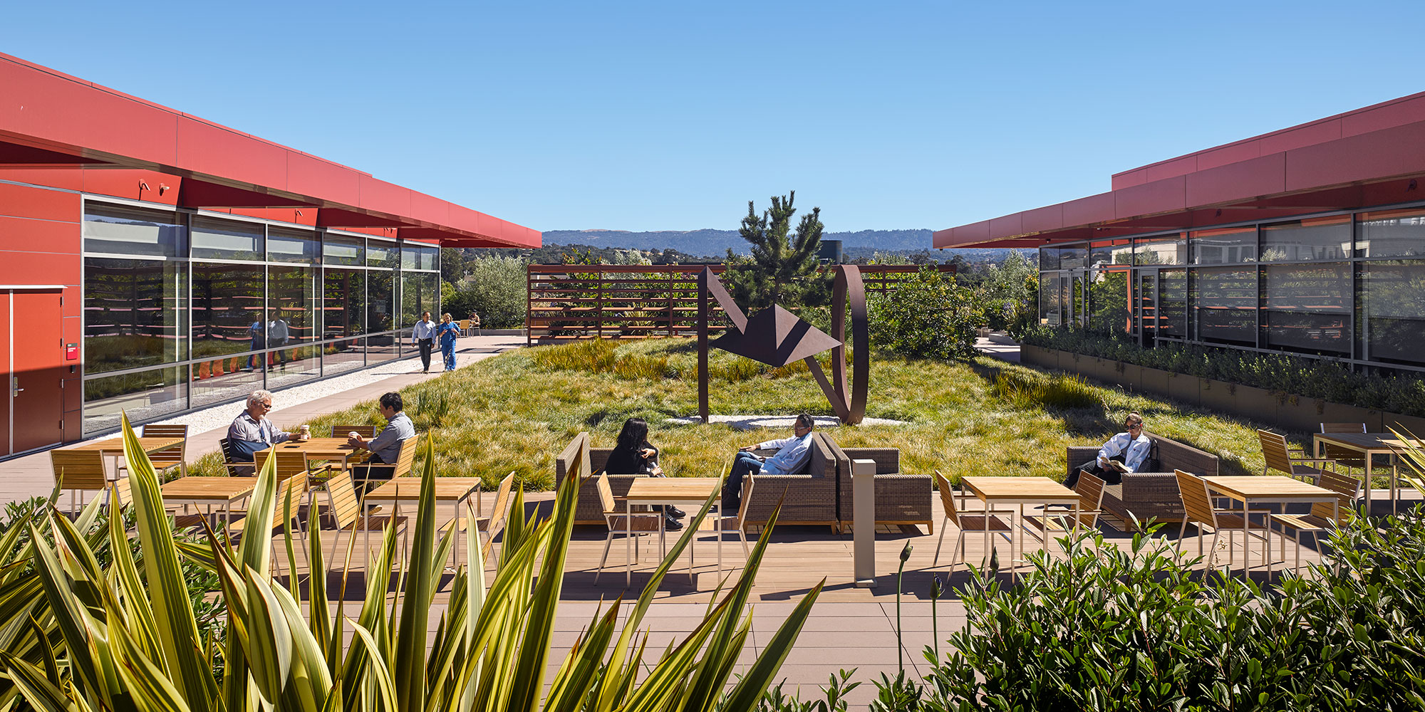 The design of the new facility reinterprets and updates the original 1959 Edward Durell Stone-designed hospital with open-air courtyards in a combination of a central atrium and rooftop green space. The atrium brings daylight and landscape to the lower levels, where a landscape feature and public amenities create a welcoming and memorable environment for patients, visitors, and staff alike. Roof gardens on the second and third floors provide additional outdoor spaces associated with the cafeteria and other public functions and are a complementary design to the courtyards and arcades found throughout Stanford University and its Medical Center campuses.