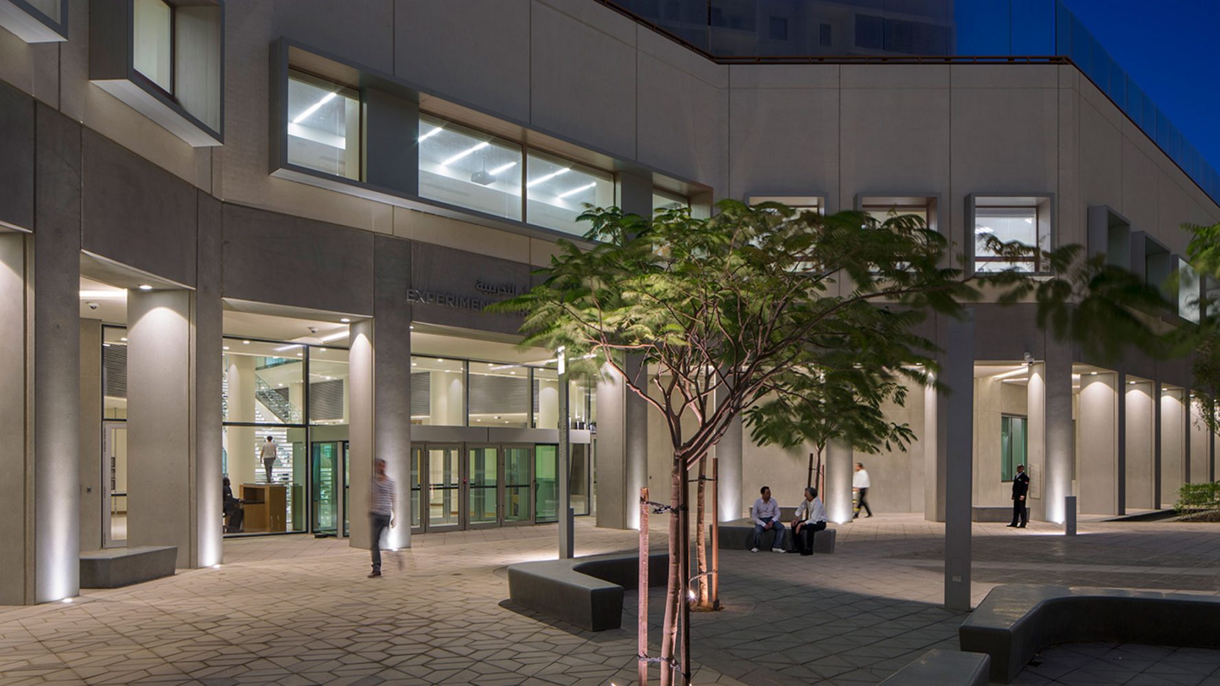 Una red de 29 edificios académicos, residenciales, para el arte, la vida estudiantil y la investigación está dividida en niveles y orientada al peatón e integra las tipologías de planificación regionales y occidentales para crear un microclima confortable que permite que el liberalismo intelectual florezca en el corazón de Oriente Medio.