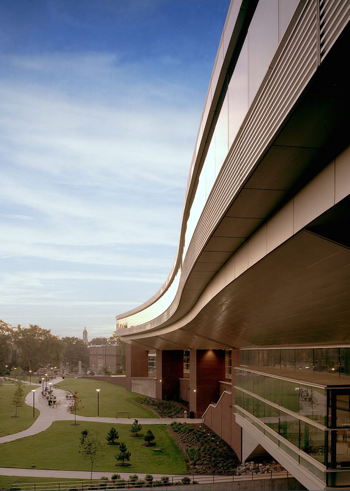The original program for this project called for the design of a new home for the College of Information Sciences and Technology (IST) that would demonstrate the university’s commitment to advancing technology as a bridge between the sciences and humanities. After careful evaluation of the program, site, and existing campus facilities, Rafael Viñoly Architects proposed a radical reinterpretation that was subsequently adopted. Two sites were examined prior to the start of schematic design. The original brief for the project included the building for information technology and a pedestrian bridge over U.S. Route 322, connecting the building to parking lots and the engineering school campus.