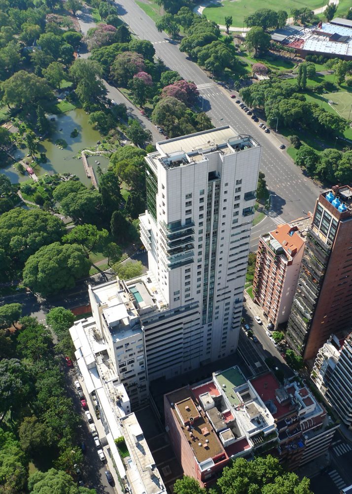 Esta torre residencial de lujo de 33 pisos de altura construida en acero y hormigón con revestimientos de piedra caliza, cristal y aluminio, se erige al borde de un tradicional jardín japonés en un exclusivo barrio residencial de Buenos Aires. El emplazamiento del edificio ocupa el borde delantero de una manzana residencial que da al Parque Tres de Febrero, lo que proporciona a sus residentes vistas a zonas verdes desde tres lados del edificio.