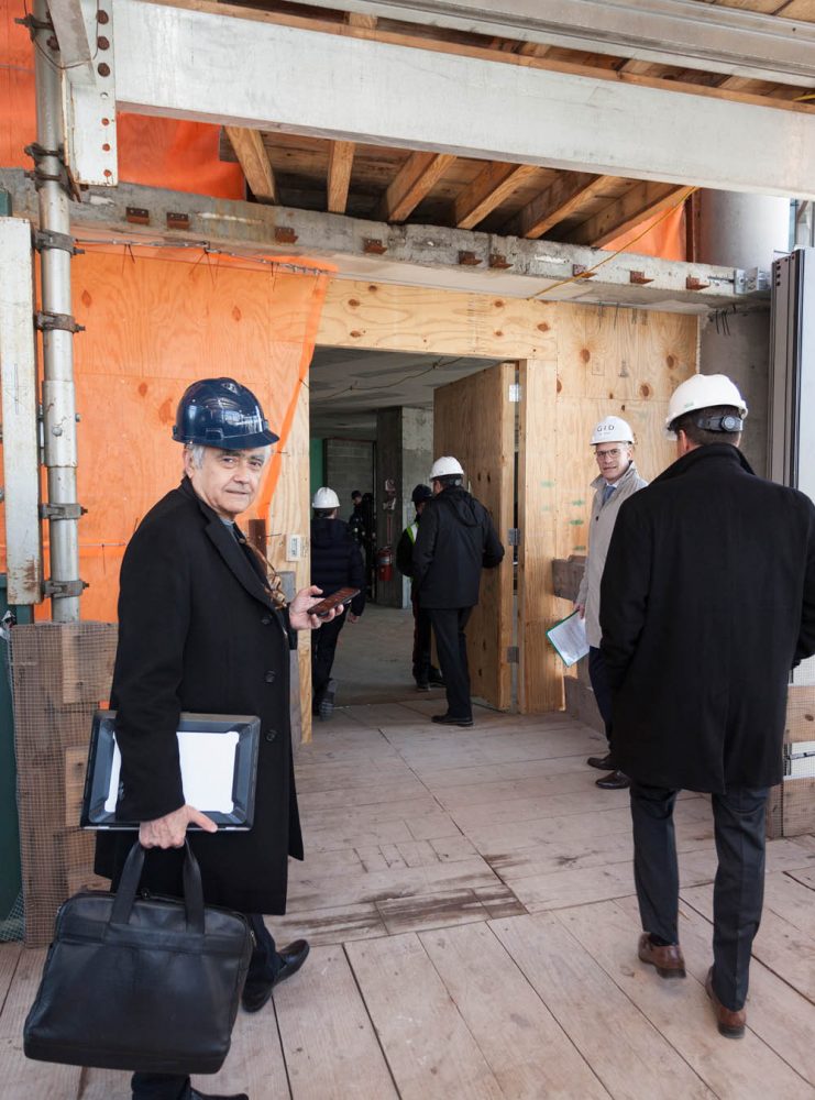 The top of the building, where the angular massing of the tower converges to an apex so that there is no “roof”, the mechanical floors include energy recovery equipment as well as a retractable building maintenance unit that is completely concealed by the envelope of the building.