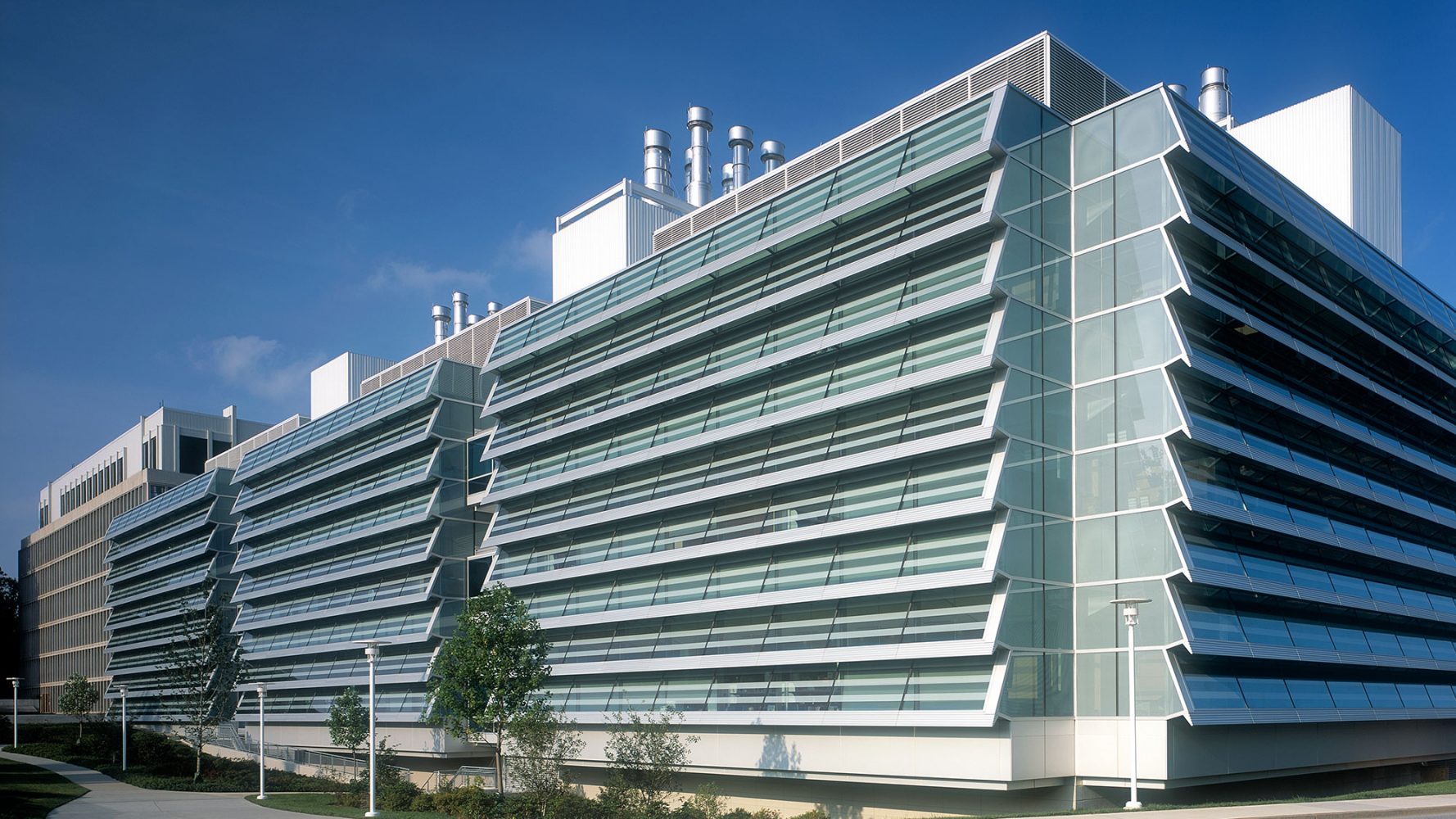 Los módulos de laboratorio son flexibles y abiertos, y están cubiertos por pisos mecánicos intersticiales que permiten convertirlos fácilmente en oficinas o laboratorios. Alrededor del perímetro de cada módulo se disponen núcleos de circulación vertical y huecos mecánicos, y los corredores de circulación se mantienen entre módulos para maximizar la comunicación entre laboratorios y mantener su plan abierto. El cerramiento dentado del edificio, un muro cortina compuesto de tres capas horizontales de cristal inclinadas hacia el cielo por piso, proporciona sombra a gran parte de la superficie del edificio y, de este modo, reduce el incremento de calor para los sistemas mecánicos y de ventilación, al tiempo que maximiza la iluminación natural y las vistas al exterior. Bajo el nivel del suelo se encuentran los espacios de carga.
