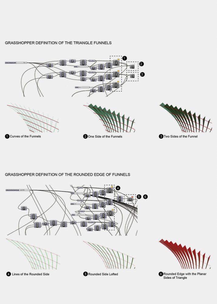 CRD has been an essential resource for various projects within the office, including the automatic generation and documentation of an international airport terminal whose 3,809-foot-long expanse included a 6,512 unique roof panels and 85,574 unique ceiling panels. Similarly, a performing arts theater designed for a world class international campus of one of the leading universities in the United States, included hundreds of unique acoustic ceiling panels. In recent years, the team helped to optimize the design of vertical fins and glass curtain walls for the double curved form of 20 Fenchurch Street. CRD ensured that the most effective and efficient work flow between various software platforms and professions was always being utilized.