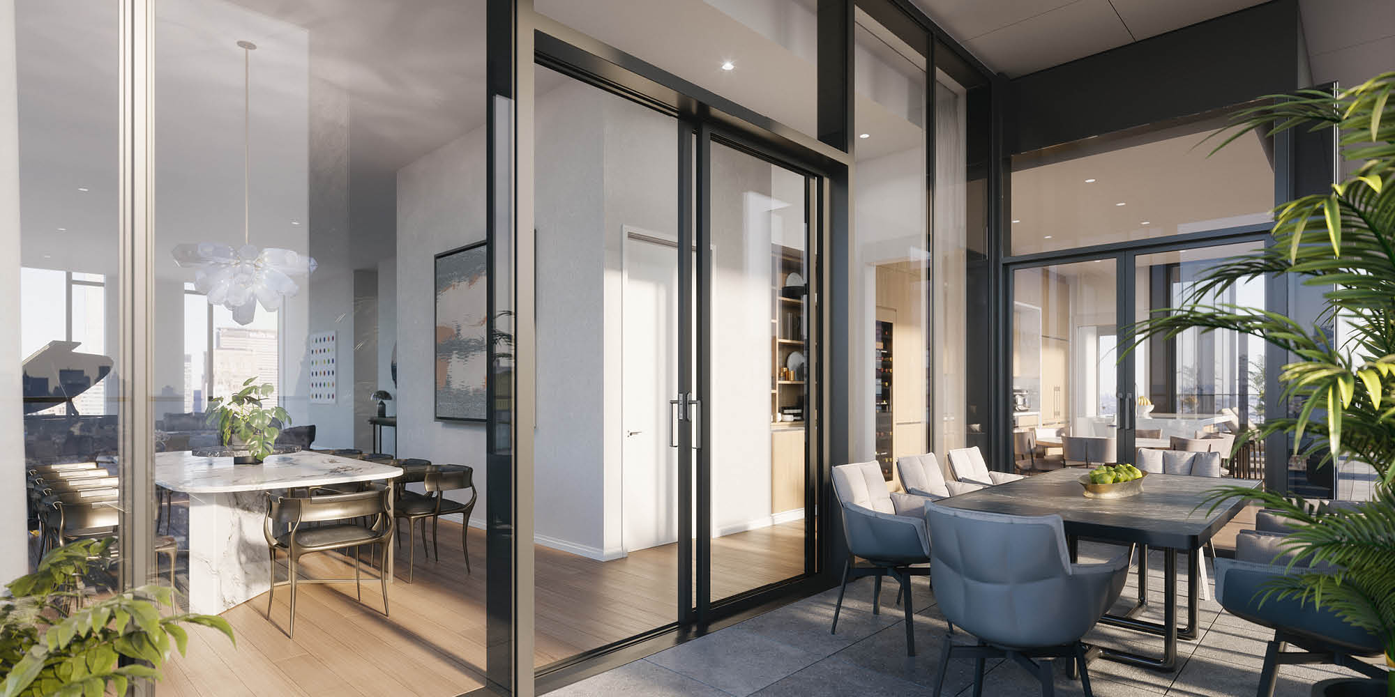 277 Fifth Avenue’s architectural design exemplifies a modern, minimalist aesthetic, defined by a building layout with high ceilings and floor-to-ceiling windows that attract abundant natural light and reveal the beauty of the New York cityscape. Each residence was designed as a corner unit with at least two exposures, and many residences have three or four exposures. Columns support the building only at its perimeter to keep the interiors free from structural elements that might interrupt the layout of the rooms.