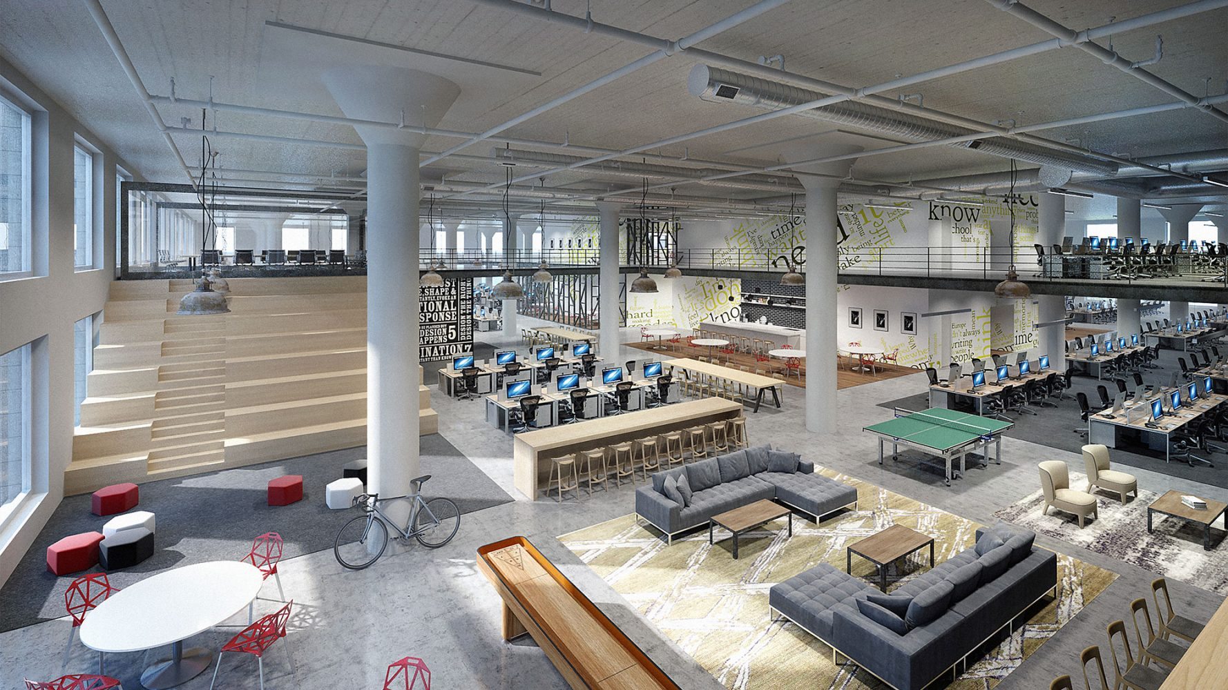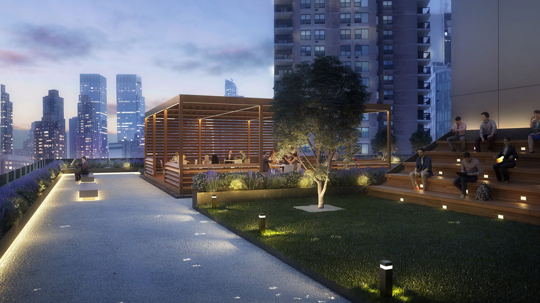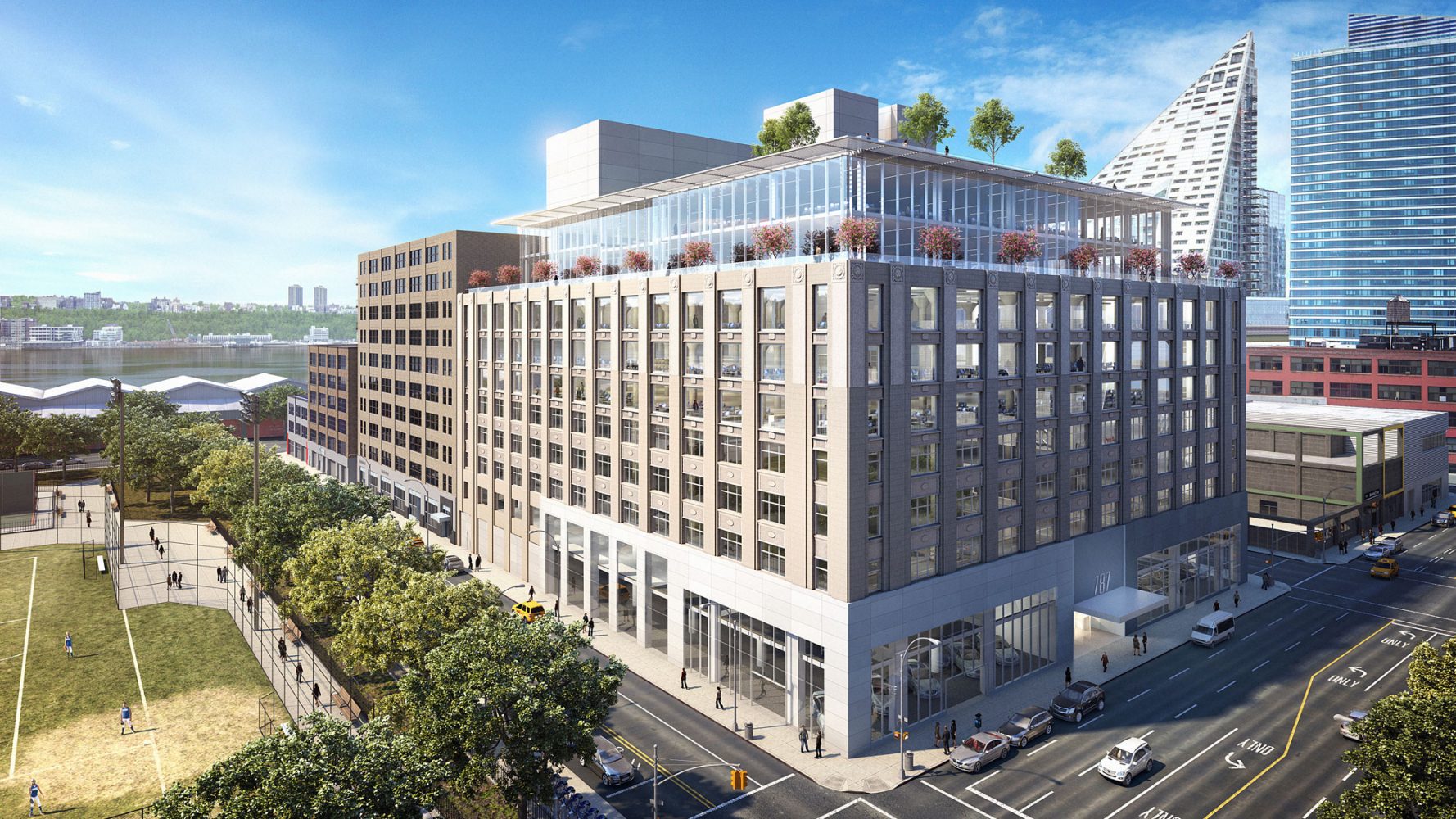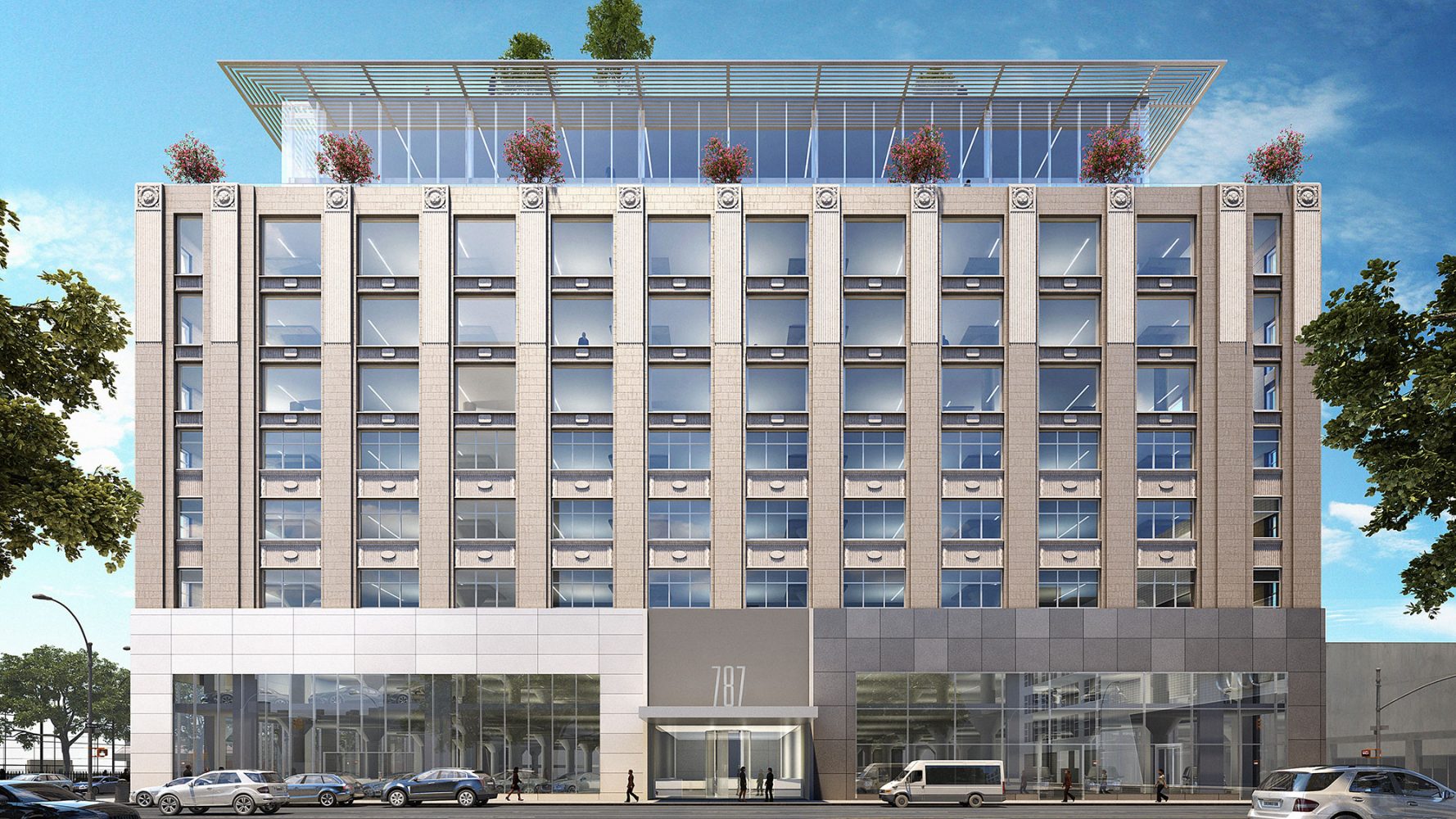 An existing eight-story automobile showroom near Columbus Circle in Manhattan, the historic structure at 787 Eleventh Avenue–built in 1927 by Albert Kahn as the home of the Packard Motor Company–was in need of renovation. After developmental analysis with the client, Viñoly chose to reallocate existing zoning area within the building to create an addition of two upper floors topped by a 12,000-square-foot (1,115-square-meter) recreational green roof deck. With five floors of car showroom and service space and five floors of commercial office space, the transformed 10-story building will serve an expanded workforce and create a more social work environment by encouraging colleague interaction on the roof deck and on the private outdoor terraces below it.