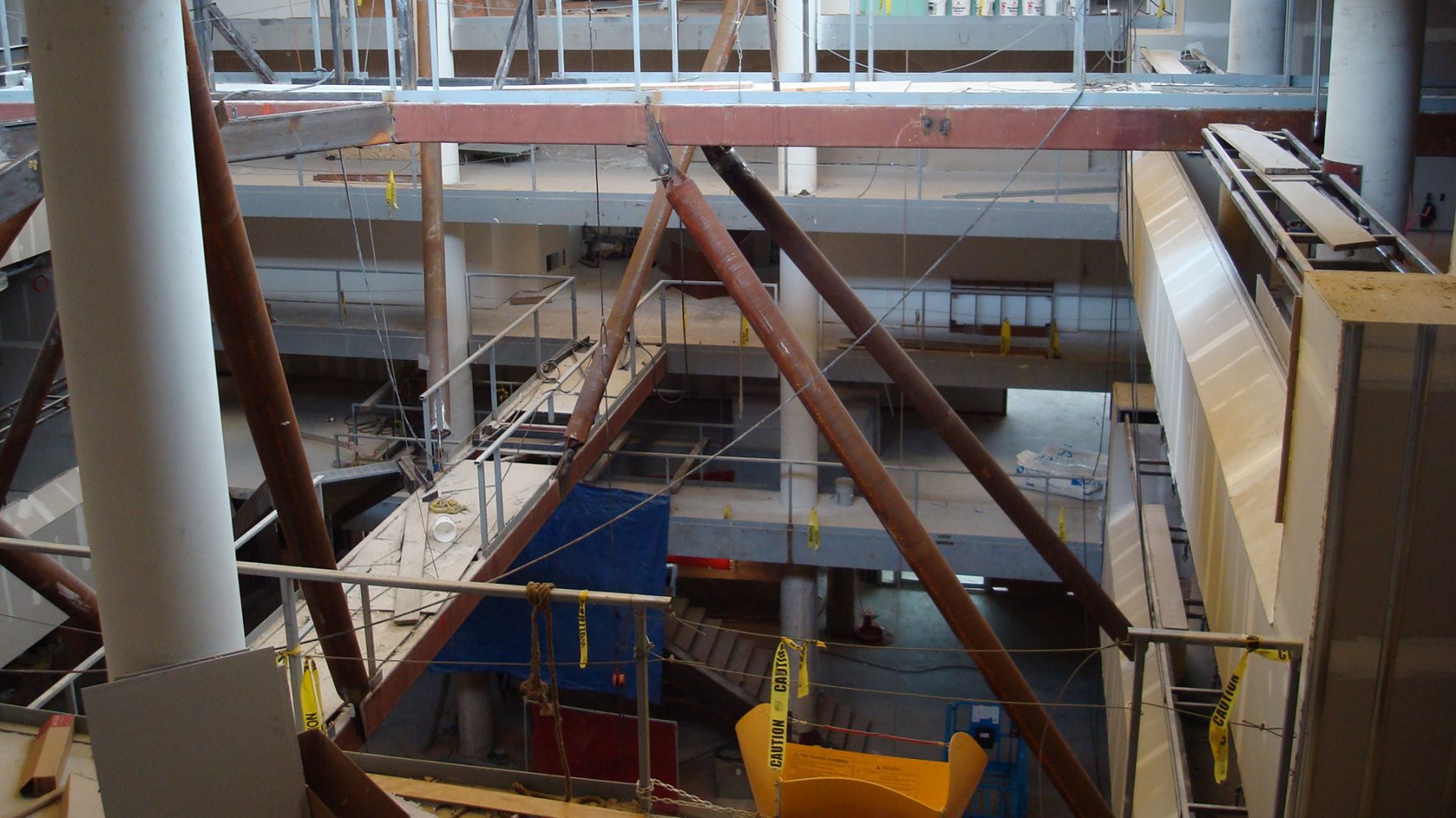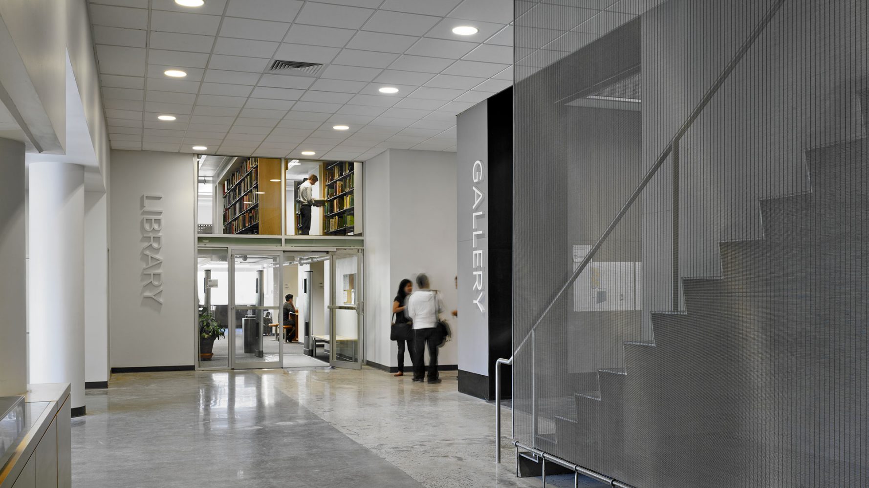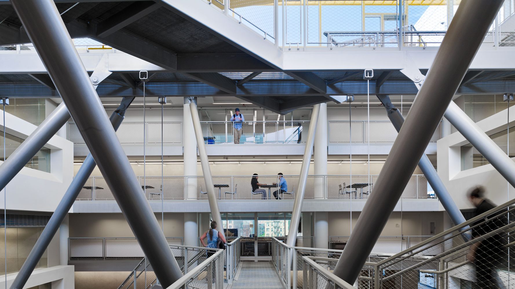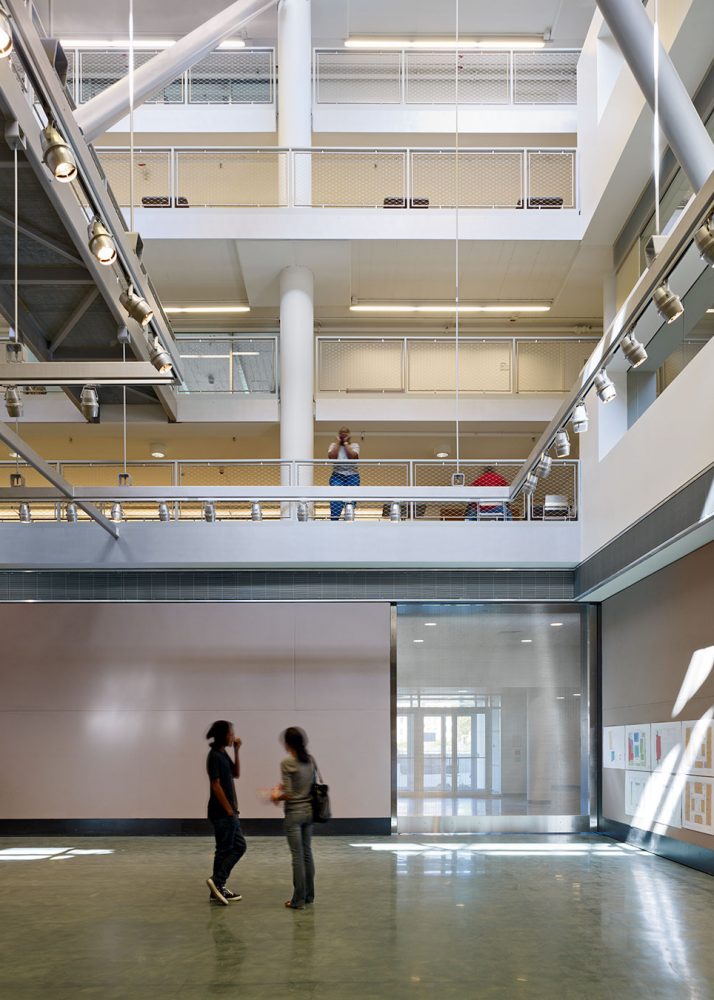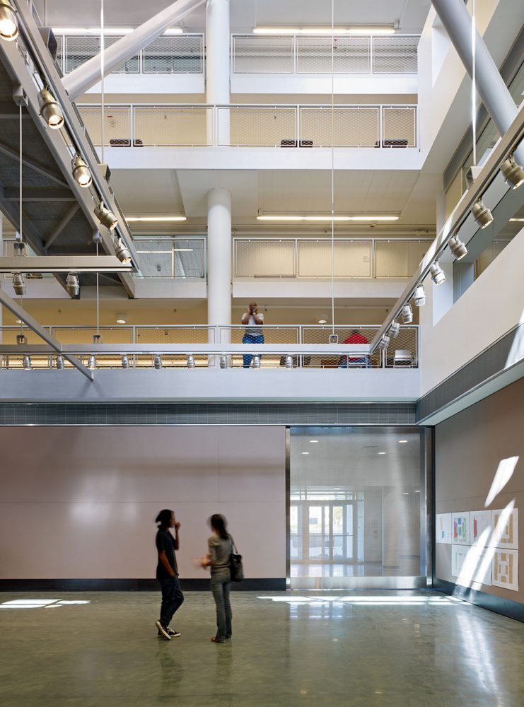 An existing five-story, modernist glass-block building was overhauled by organizing the studio and critique space around a central sky-lit atrium that is transected by a series of pedestrian bridges.