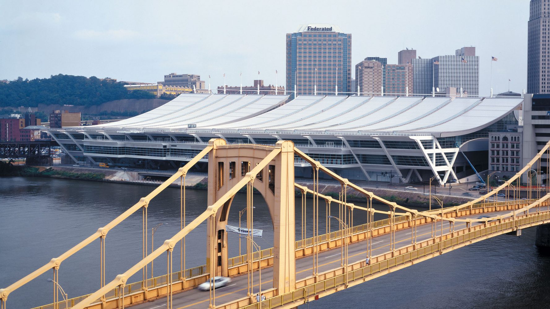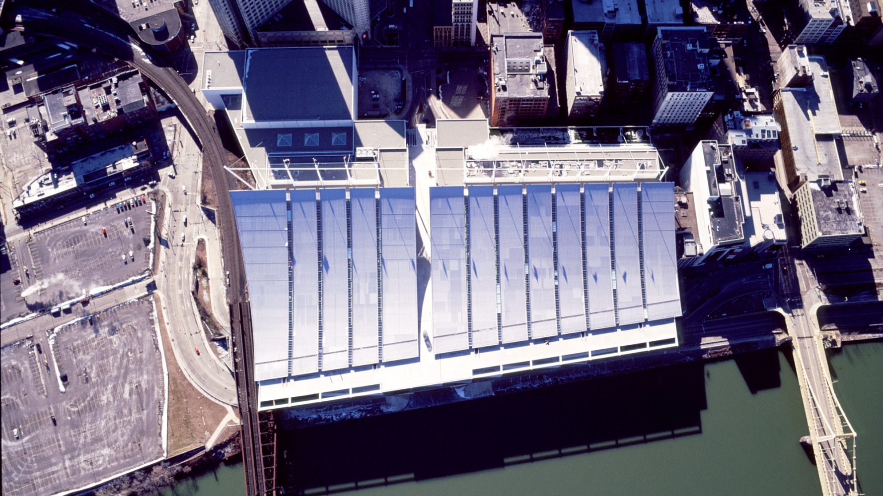 世界上第一个获得绿色建筑白金认证的会议中心,设计的结构灵感汲取于跨越匹兹堡的阿勒格尼河大桥,以一个悬吊的大屋顶支撑建筑整体轮廓,同时大屋顶可以带来被动通风和无柱大空间。