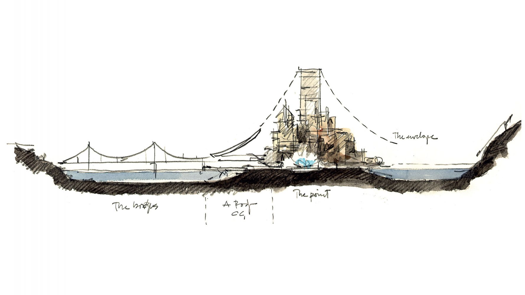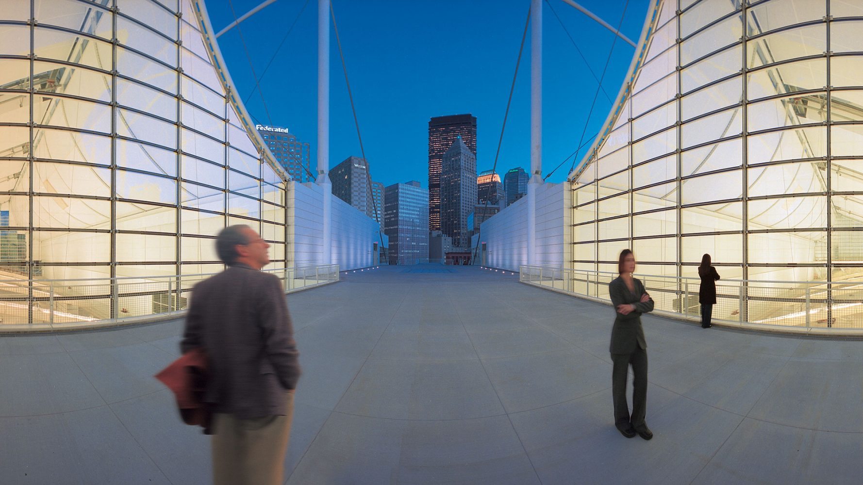 设计将匹兹堡的公共领域扩大,新的会议中心为公众提供了俯瞰市中心和阿勒格尼河的全景屋顶平台,同时也提供了建筑下的地面人行连接通道,步道沿着水景,长达46.5米,引导行人至河滨公园。