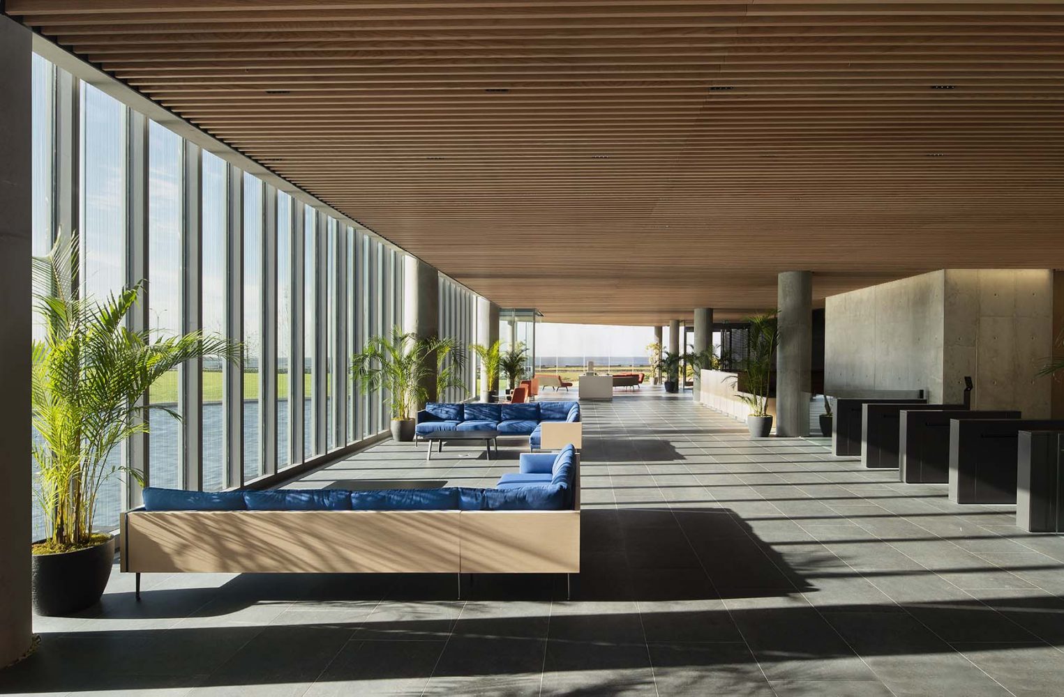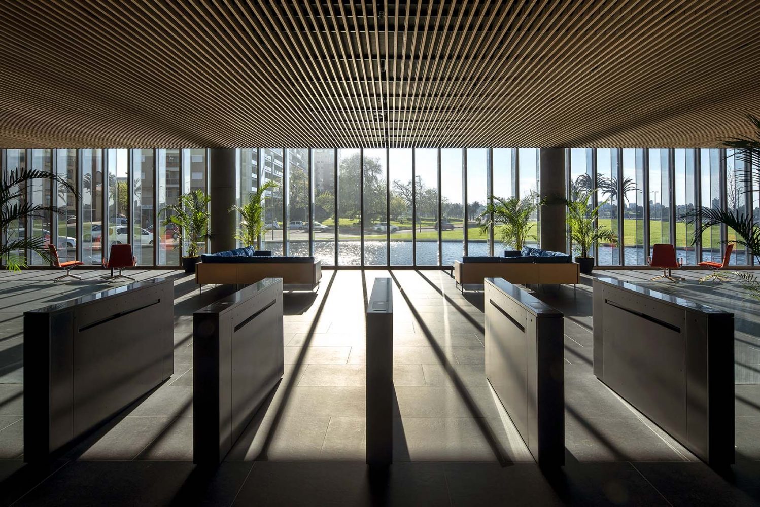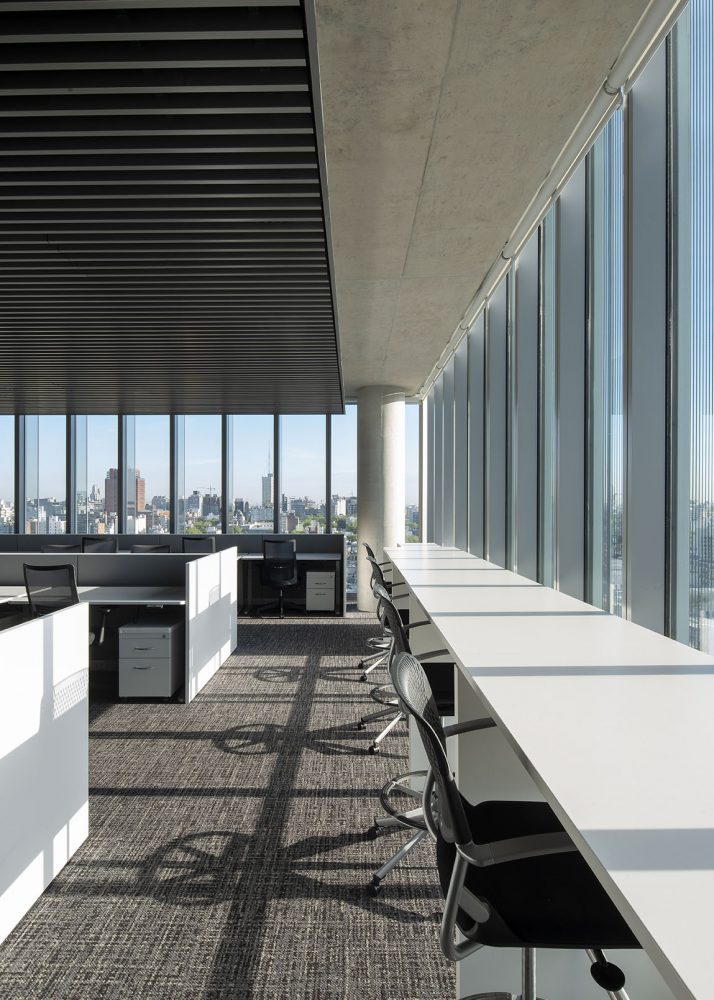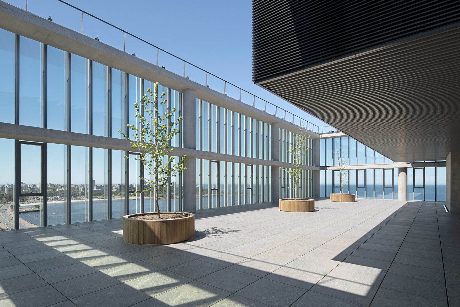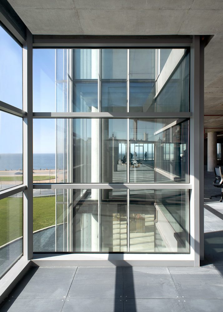 The first office building in Uruguay designed by Rafael Viñoly Architects features a compact core, post-tensioned floor slab construction and efficient structural load distribution that enable very generous, extremely flexible floor plate dimensions.