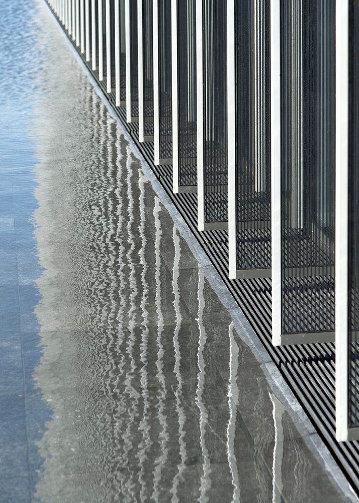 Edificio Plaza Alemania’s total area of 13,390 m2 occupies the western portion of a new municipal public plaza that is also designed by Rafael Viñoly Architects. The Plaza Alemania not only provides a manicured green space that frames the experience of the building and its occupants, it also ensures that no other building will ever block its views along the Rambla, towards the city, or out to the water.
