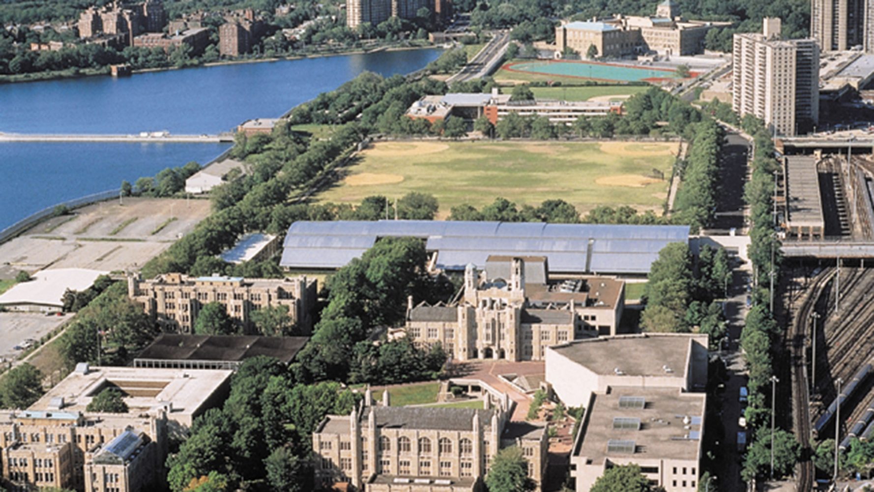 Una investigación de los requisitos programáticos del College amplió el informe y reorientó el emplazamiento hacia el límite septentrional del Campus y al final de su eje principal, donde una abertura en su cubierta revestida de acero inoxidable y de escala urbana sirve como entrada principal.