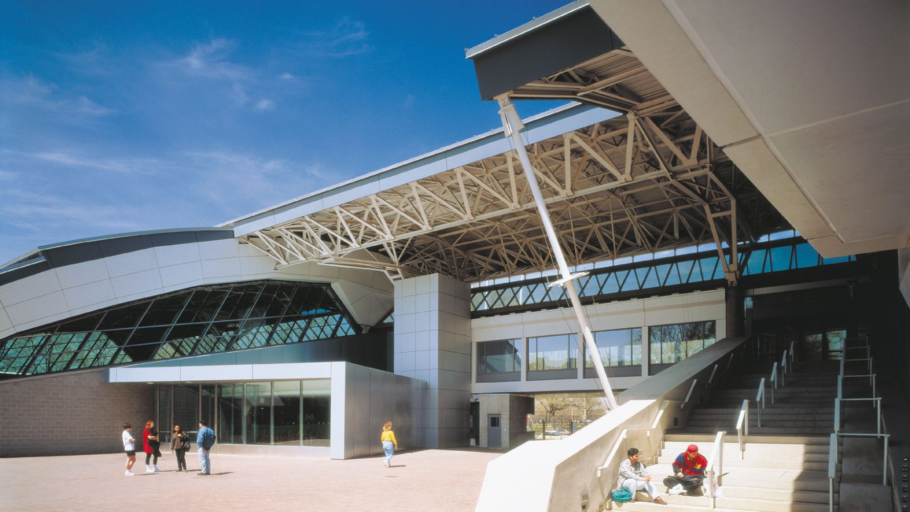 La cubierta del edificio, una curva convexa segmentada, desciende prácticamente hasta el suelo del lado del campus. Del lado de la “calle”, se apoya sobre una estructura cerrada por un muro de hormigón y cristal que alberga aulas y oficinas administrativas. Un vacío rectangular en la cubierta, posicionado de forma asimétrica, enmarca el vestíbulo y una gran escalera, que constituyen, en conjunto, la entrada principal al complejo. Desde el exterior del campus, esta entrada se expresa como una abertura cuadrangular monumental en la fachada de hormigón. El edificio, que sirve como entrada ceremonial al college, ha adquirido desde su finalización un estatus emblemático, ya que se ha establecido como símbolo del centro para la comunidad que lo rodea y ha promovido una sensación de apertura y accesibilidad.
