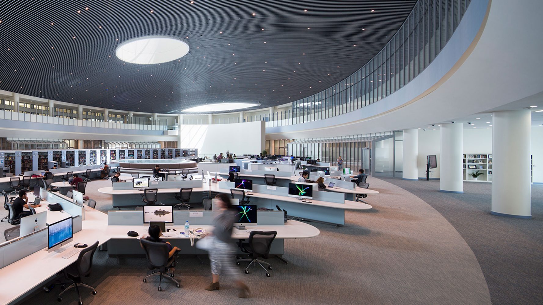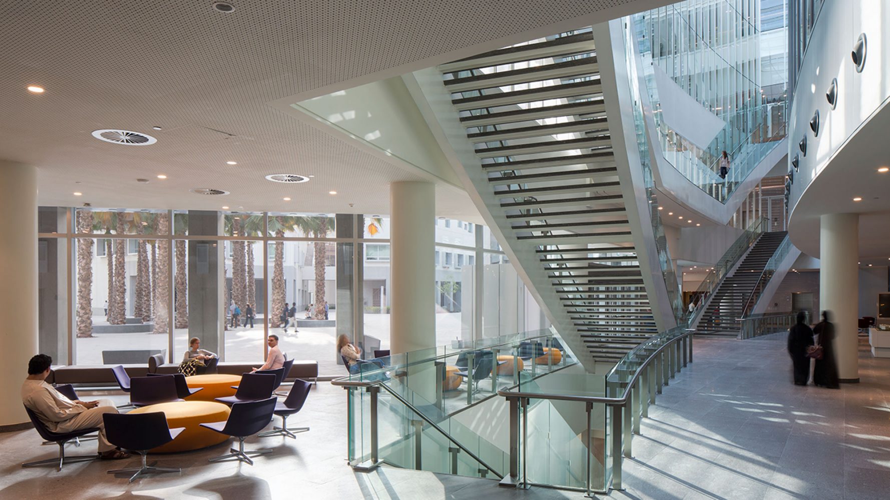 这些不同功能建筑通过当地与西方结合的规划手法为校园形成了一个舒适的微环境,在中东的心脏地带形成了一朵科技与自由之花。