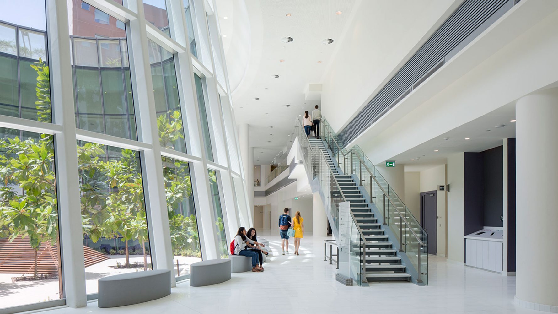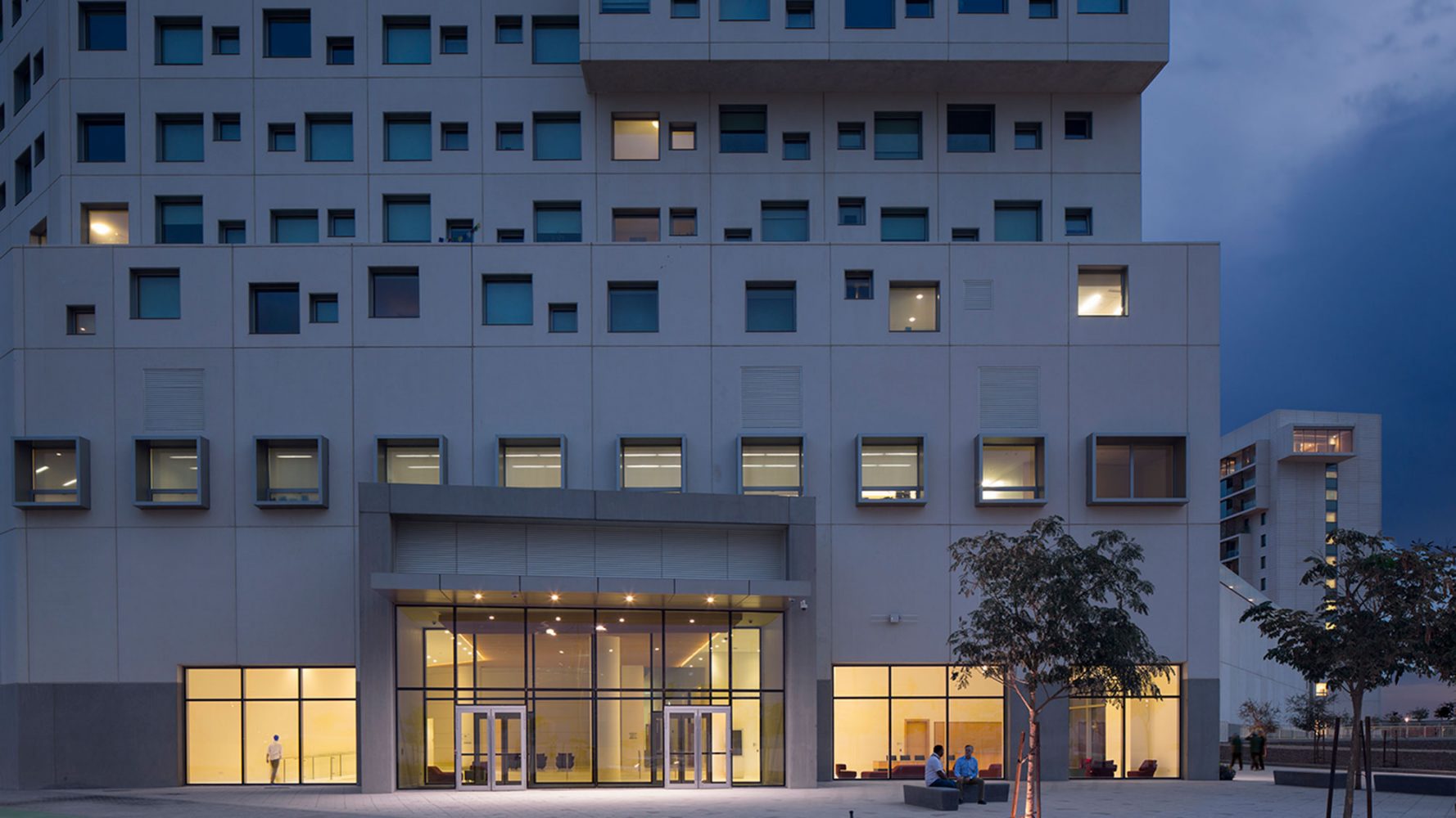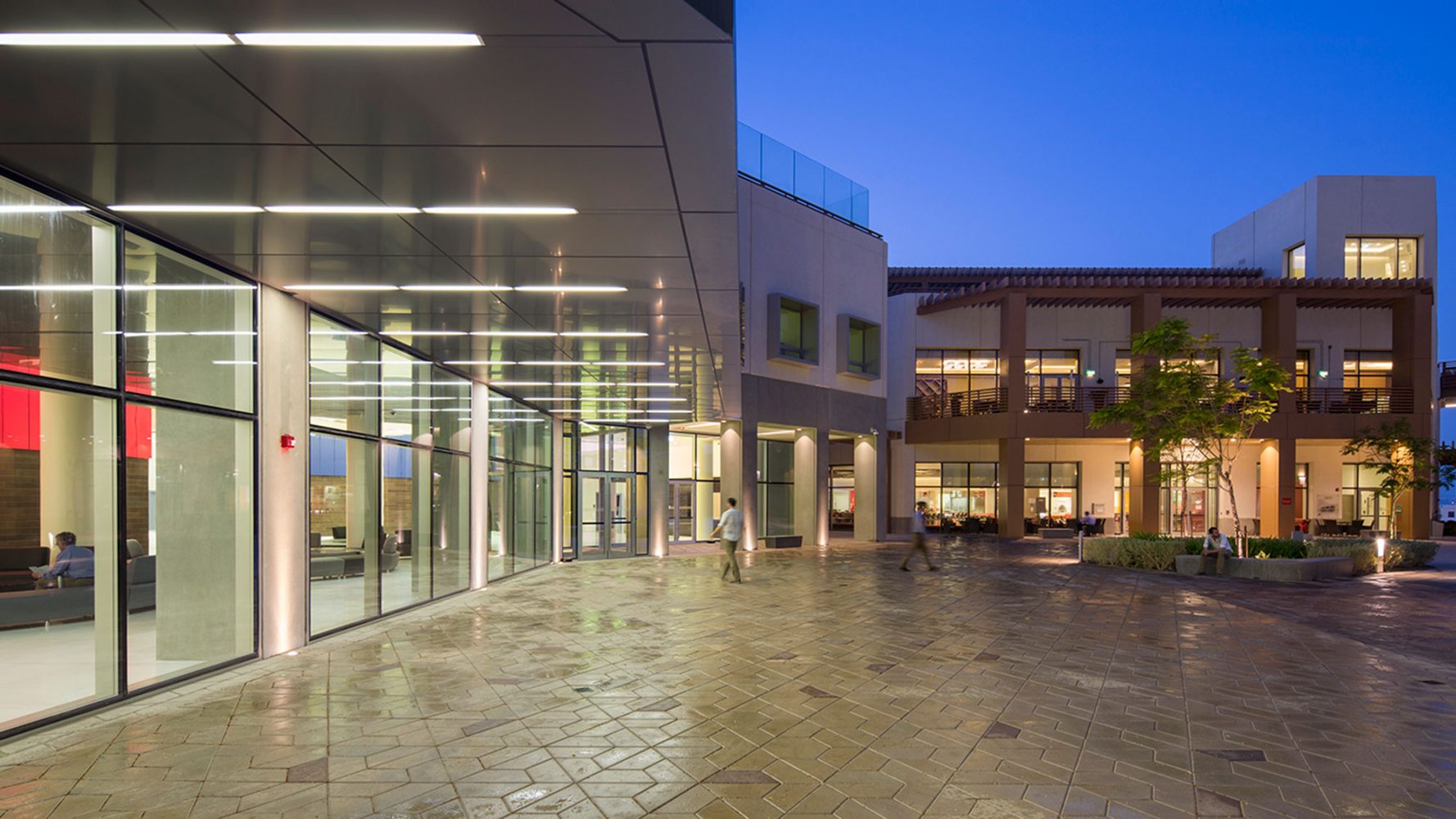 在西广场,先进的科研机构坐落在试验性研究建筑内,研究室可以满足各种变化的研究功能使用。在东广场,艺术中心内包含一个700座剧院,一个150座黑盒子剧院,放映室以及艺术教育空间。艺术中心位于学校的公共会议中心对面,作为一个具有活力的大学师生与城市生活的界面。