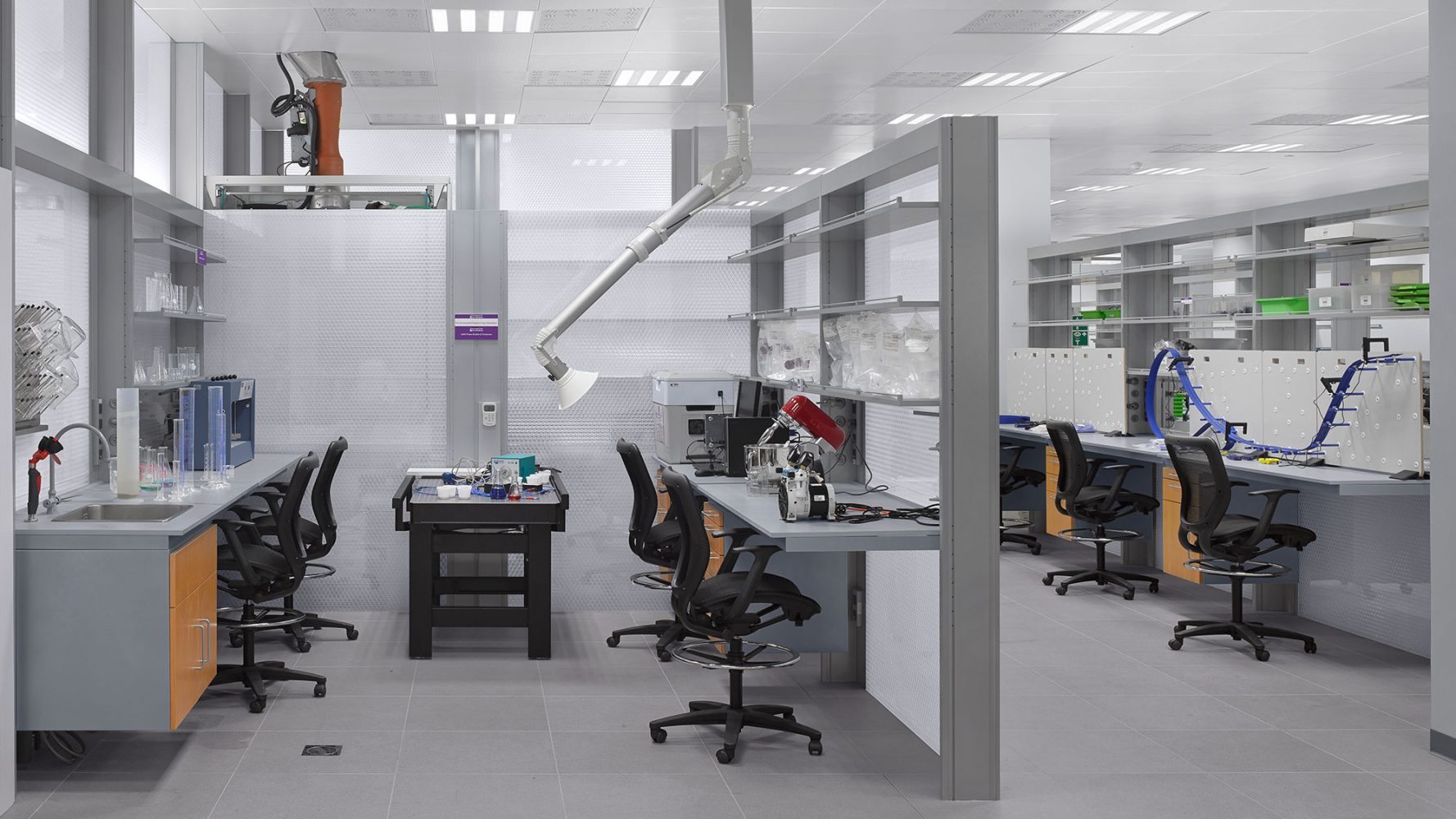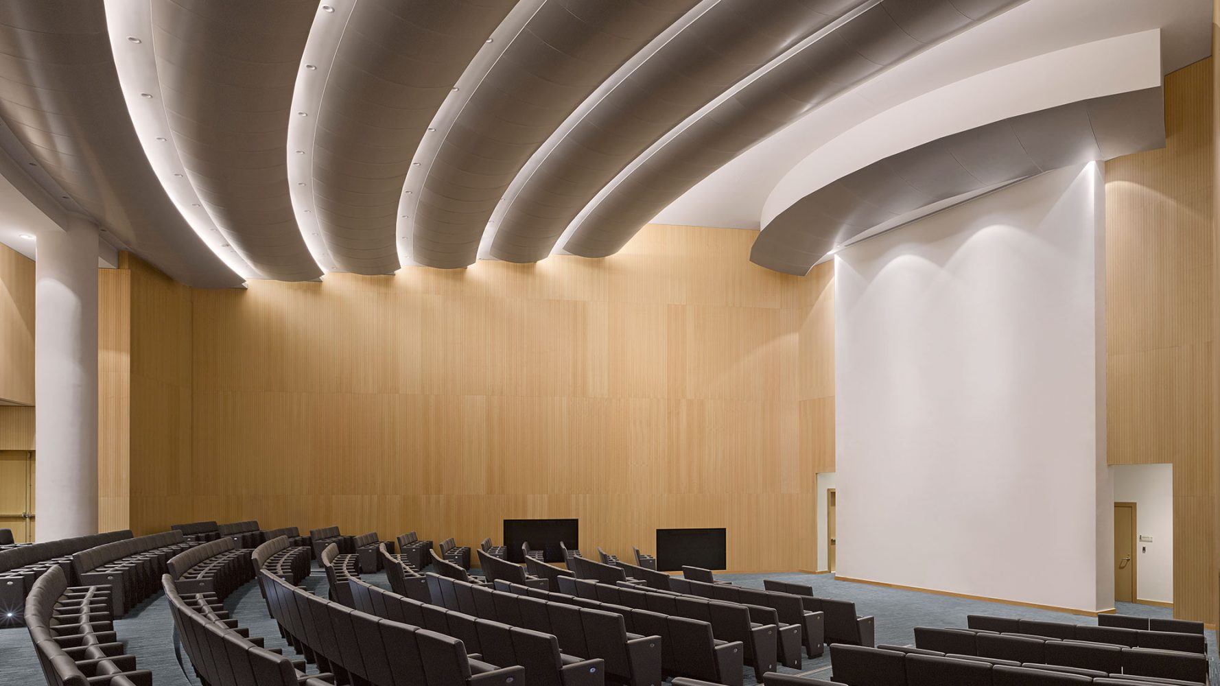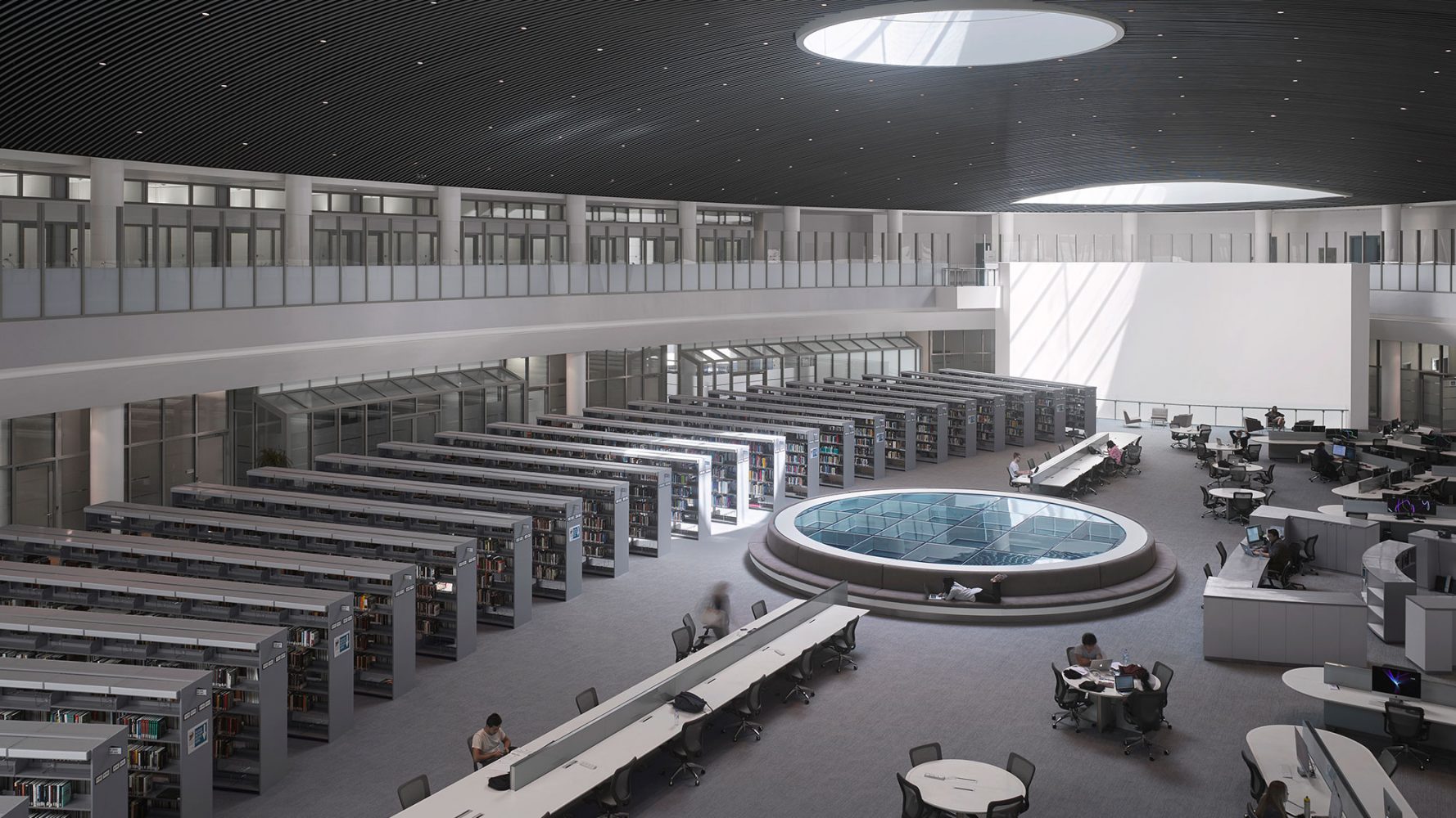 在西广场,先进的科研机构坐落在试验性研究建筑内,研究室可以满足各种变化的研究功能使用。在东广场,艺术中心内包含一个700座剧院,一个150座黑盒子剧院,放映室以及艺术教育空间。艺术中心位于学校的公共会议中心对面,作为一个具有活力的大学师生与城市生活的界面。