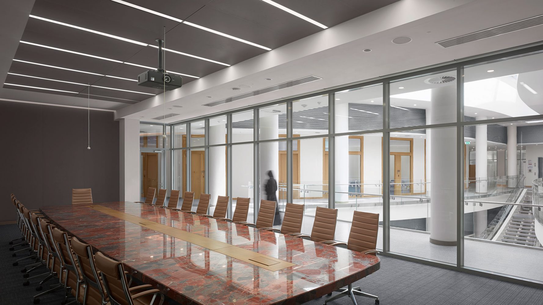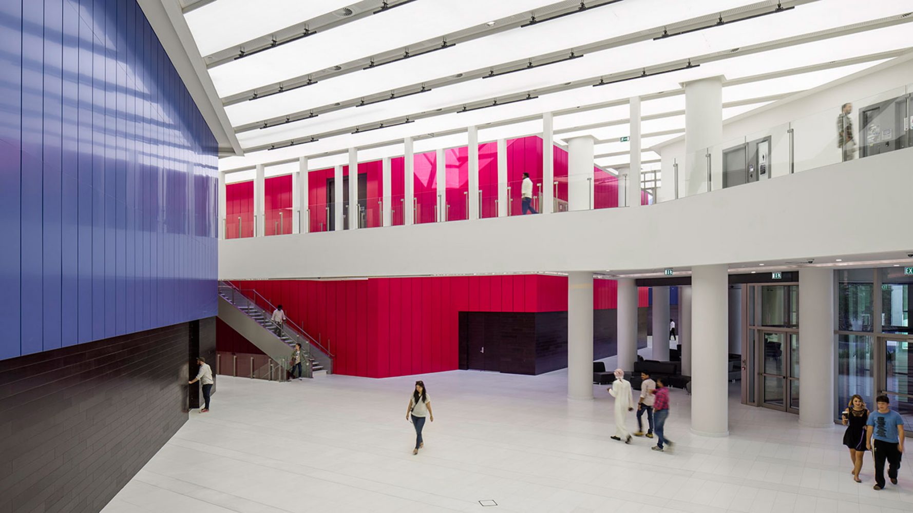 校园内的每个广场都被设置在学院建筑前。在主街和中心广场,47,500平方米(511,590平方英尺)的校园中心结合了健身房和图书馆,一些传统上被分开的元素,还有各种学生设施,包括健康中心,多信仰厅,餐厅,学生俱乐部,教室和办公室。活动的聚集使得这个建筑成为了学生生活的繁忙中枢。