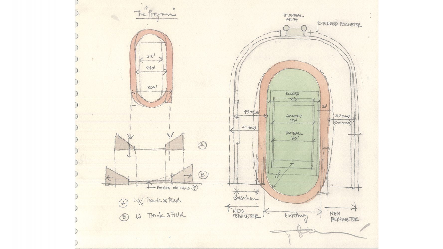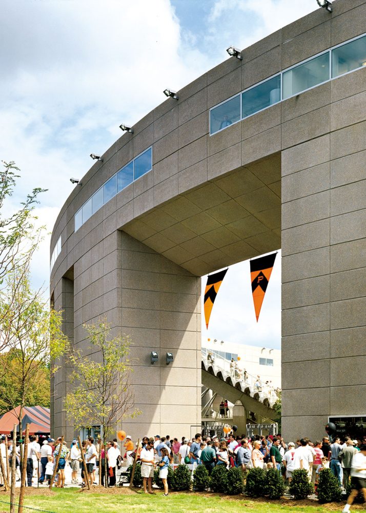 Princeton University’s aspiration was to create the most distinguished, collegiate stadium in the United States and to replace the existing Palmer Memorial Stadium, which had deteriorated beyond repair. Princeton required that the stadium be flexible enough to accommodate the broadest range of sports events–football, soccer, lacrosse, and track and field–and to serve as a year-round facility.