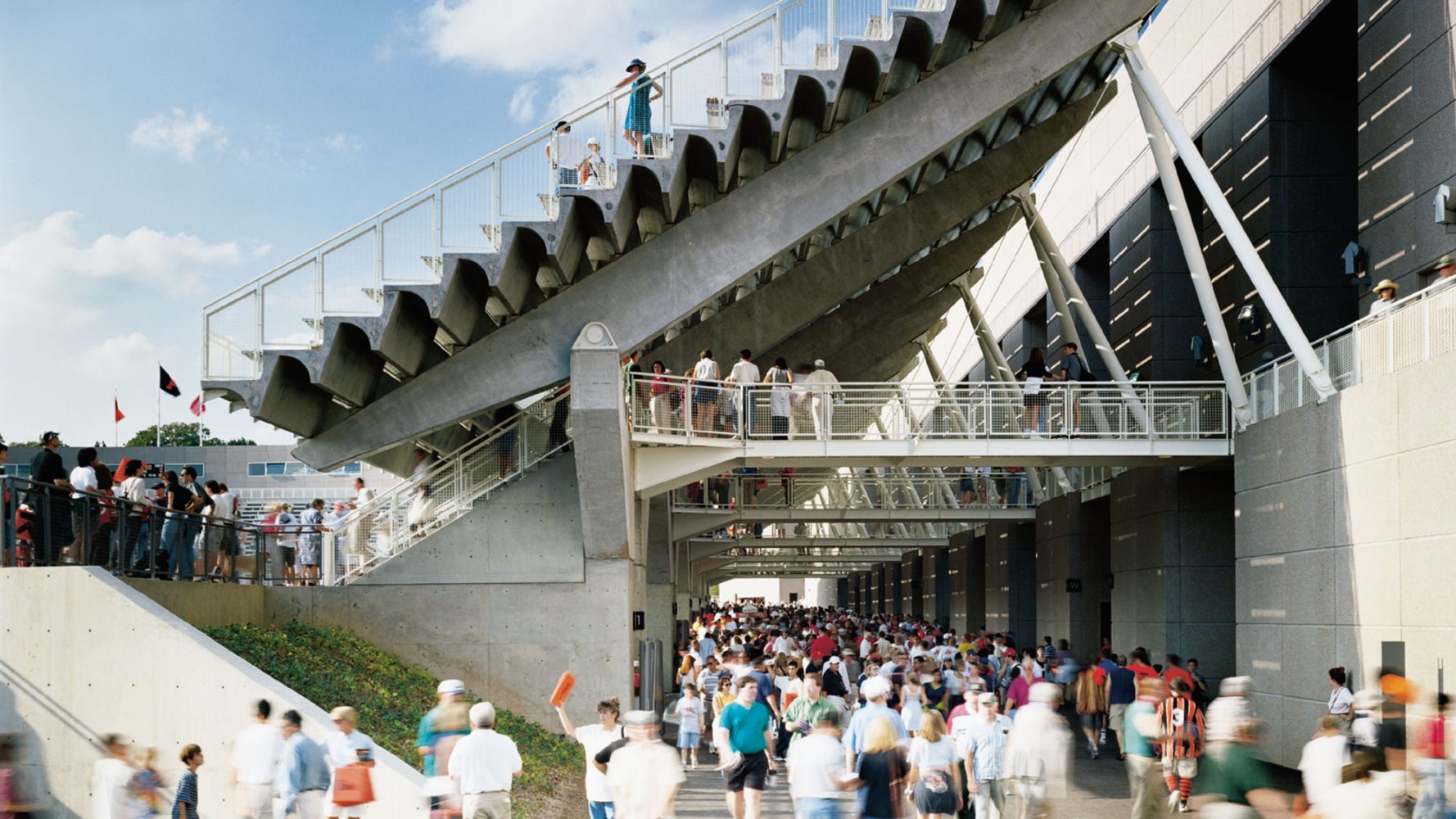 The original stadium, surrounded by a chain-link fence, sat empty most of the year because Princeton typically previously scheduled only six football games a year. In addition, the underside of stadium seating is often a dark and unattractive area, cluttered with stadium service elements. In the new stadium, the space between the perimeter “wall building” and the gates for spectator seating area was designed so that it could become an attractive place for the university community throughout the year. By moving service functions into the “wall building,” introducing natural light into the circulation, and bringing extensive planting into the space, a new kind of covered public space was created, one that can be enjoyed independently from the sports events. It is also a multi-sport facility, used for the football, soccer, and lacrosse, with spectator seating for the adjacent track and field facility.