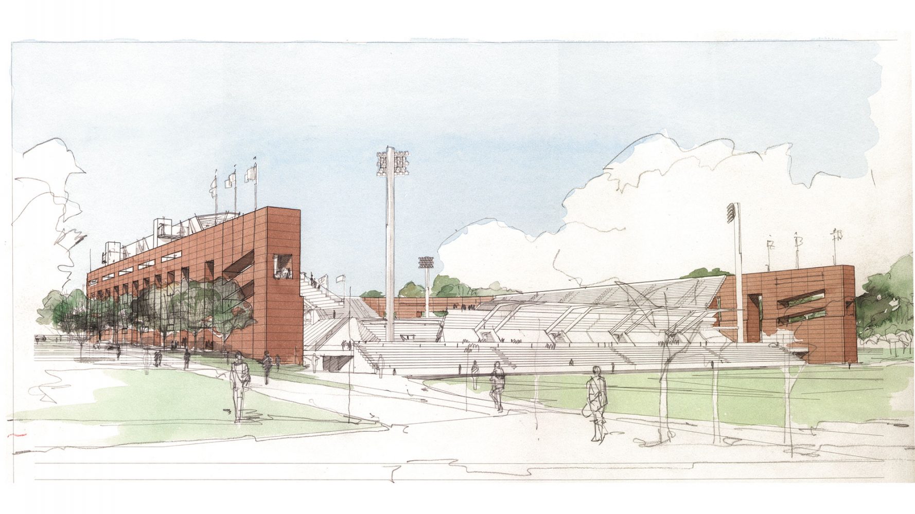 During the planning process, the physical, academic, and cultural contexts of the campus were analyzed in light of current and projected requirements. From this, 27 stadium designs in three site configurations were developed, analyzed, and discussed in detail with faculty, students and administrators. Based on these discussions, the 81 design alternatives were narrowed to 11 and then down to two designs. Construction was completed in August 1998 in time for the start of the football season.