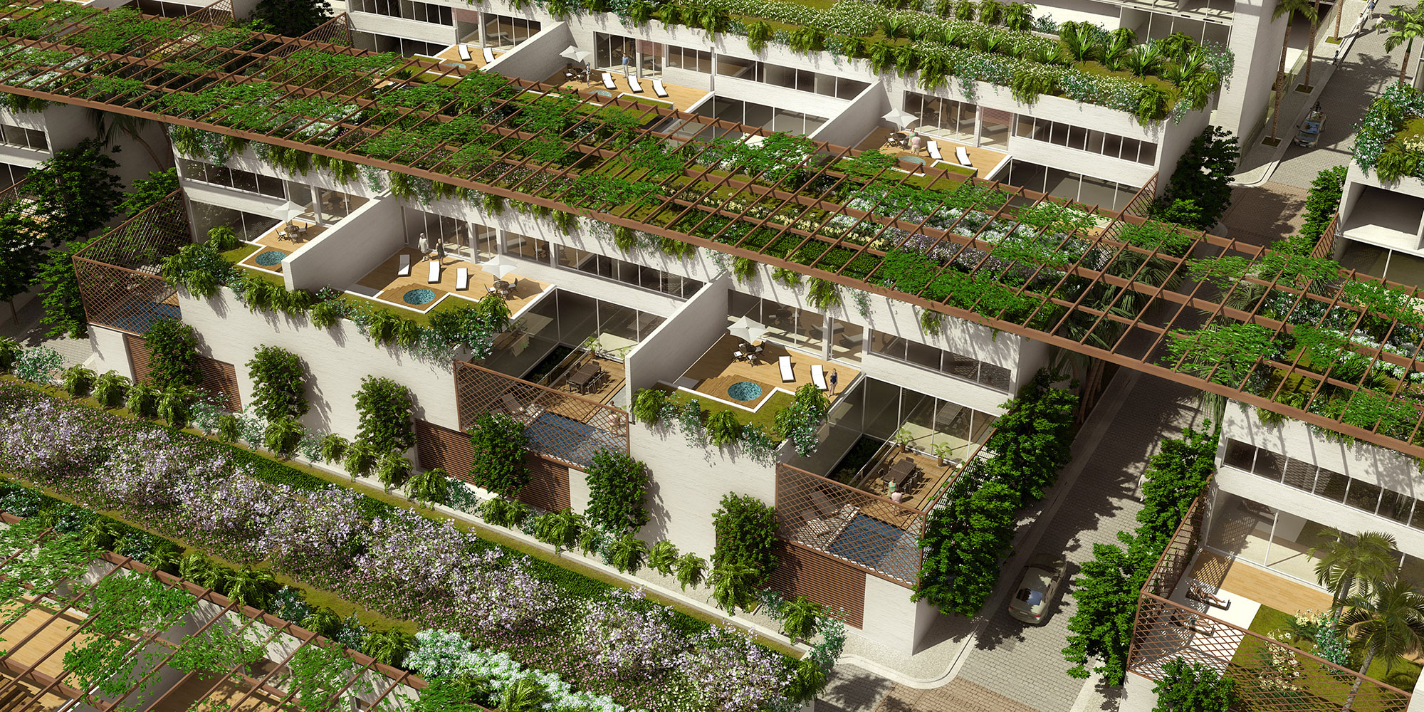 The development’s most luxurious residences are located above the mall, and include 47 spacious “Skyvillas,” each featuring a private swimming pool, landscaped terraces, and parking.