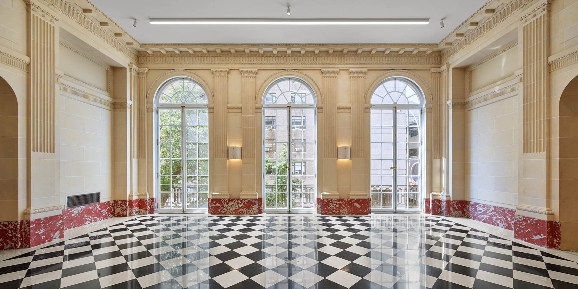 A historic 5-story landmark townhouse, designed by renowned architect Ogden Codman between 1913 and 1915, was originally the home of arts philanthropist Archer Huntington and sculptor Anna Hyatt Huntington. In 1940, the couple gifted the building to The National Academy of Design, ensuring its legacy as a space dedicated to the arts. The recent transformation, led by Rafael Viñoly Architects for the storied art gallery Salon 94, combines the restoration of the building’s original architectural details with the creation of contemporary gallery spaces, balancing historic preservation with modern functionality.
