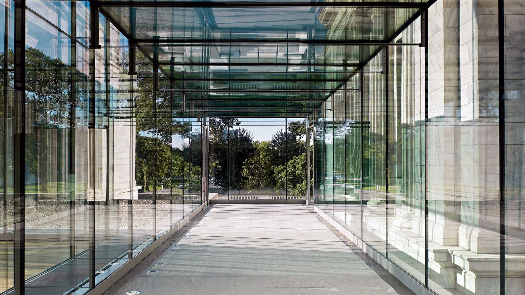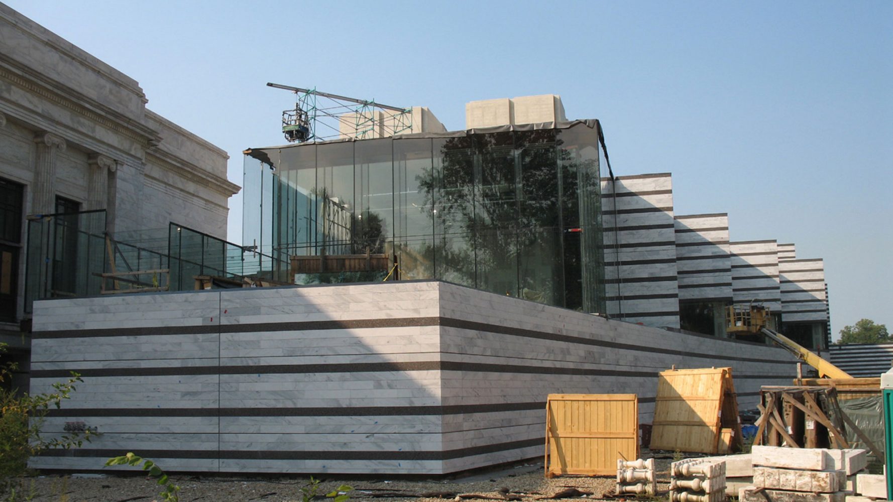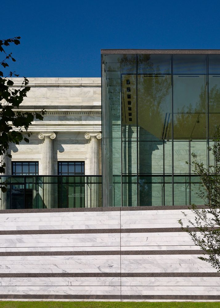 博物馆原有的1916年希腊复兴时期建筑被保存下来并维持了其主导地位,通过加建新的两个展廊连接着Marcel Breuer1973年的建筑设计。新的两翼解决了博物馆的流线问题,并且围合成一个新的明亮的中央广场。