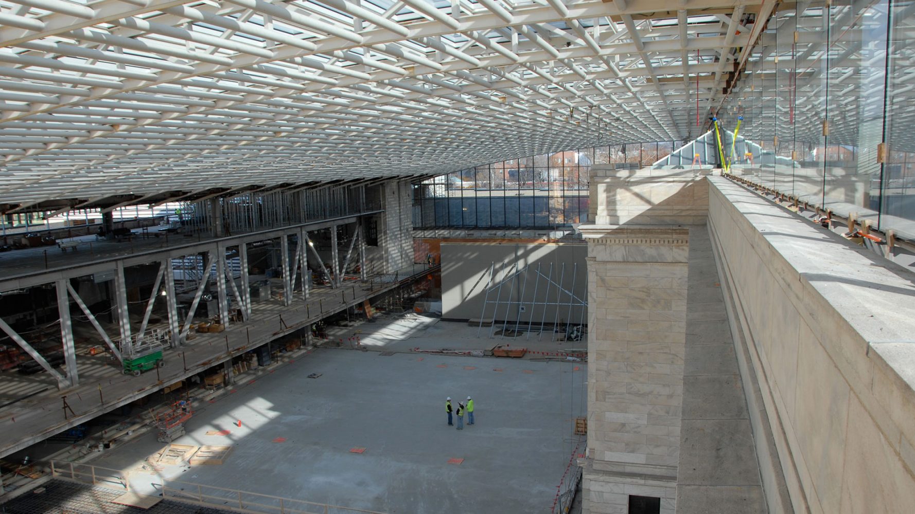 两阶段施工过程顺应博物馆的筹款时间表,并允许在项目正在建设期间继续运营。第一阶段于2009年完成,包括1916年和Breuer大楼的翻修和新东翼的建设。第二阶段从清除剩余的博物馆扩建开始,为西翼和中央中庭的建设让路,让二期建筑得以在2012年完成。
