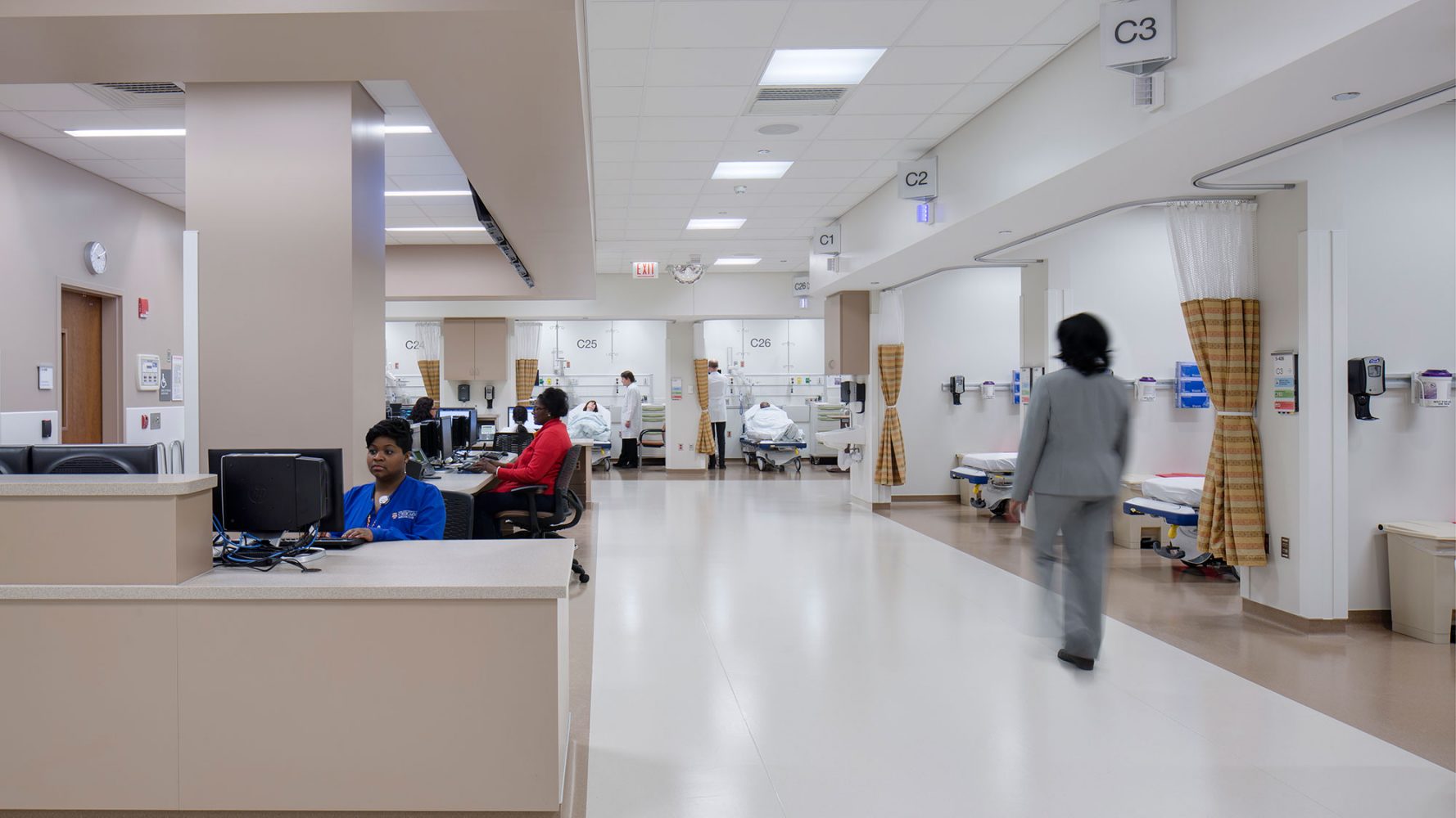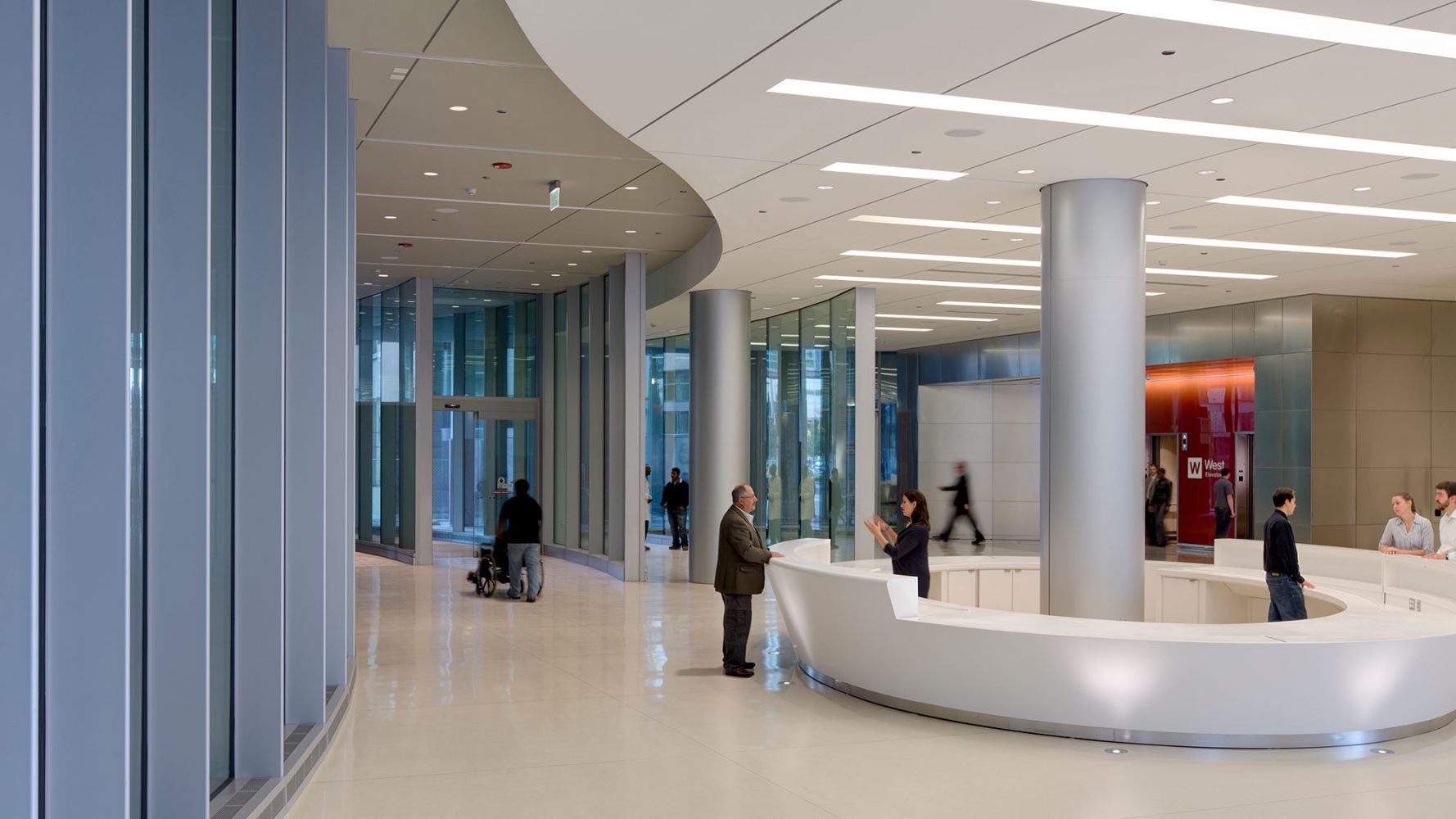 The Center for Care and Discovery’s design also supports retail and other commercial functions at the ground level, which enhances the streetscape and provides public amenities to passersby.