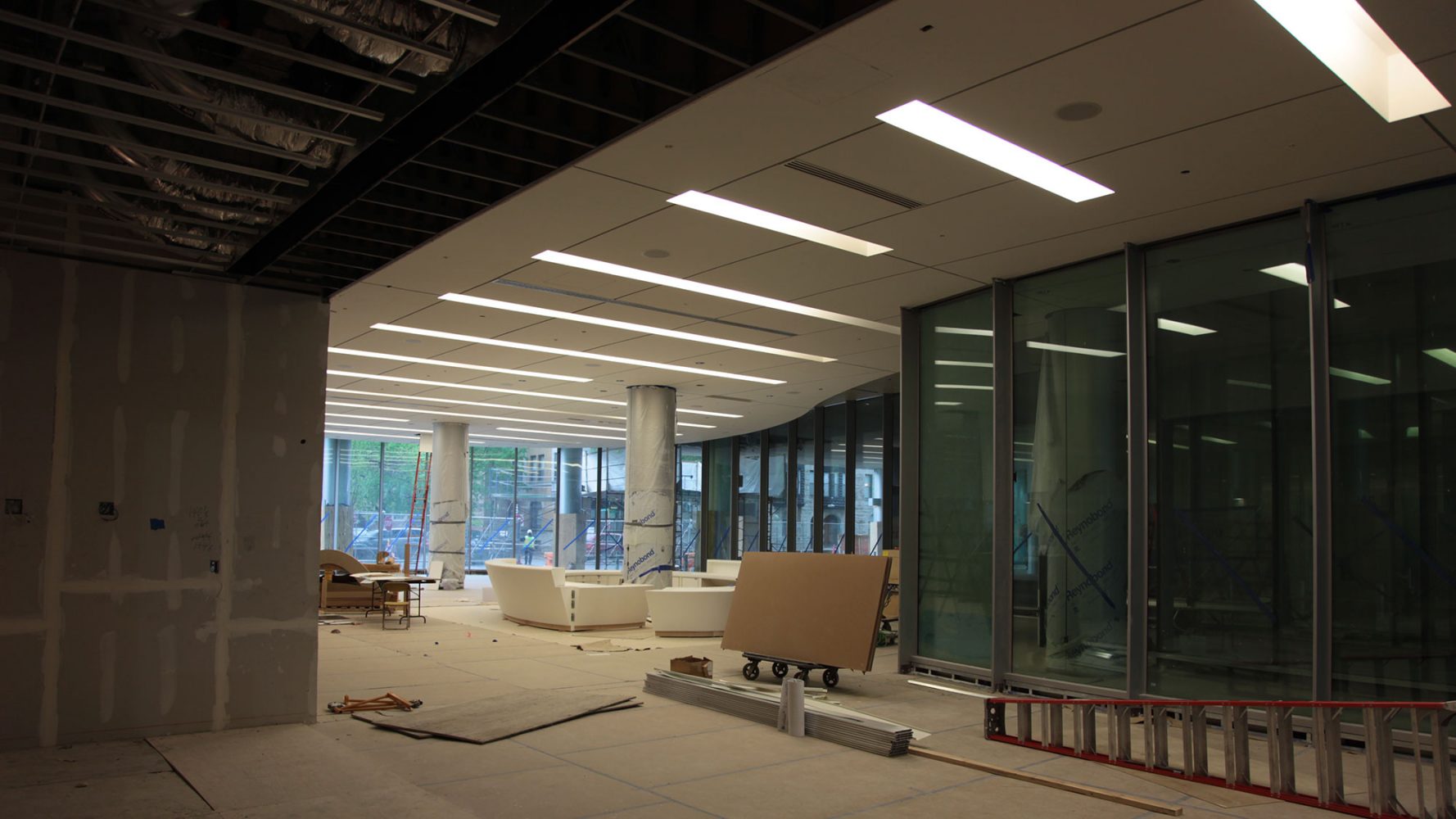 At the beginning of the project, Rafael Viñoly Architects proposed reconfiguring the site in order to develop a project with flexible, large modules and a floor plan that would create efficient spaces for a variety of programs. The original site was L-shaped, bound by Maryland Avenue to the East, and emphasized a vertical program stacking. Rafael Viñoly Architects’ design bridges over the binding street with a modular grid design that serves client needs better.
