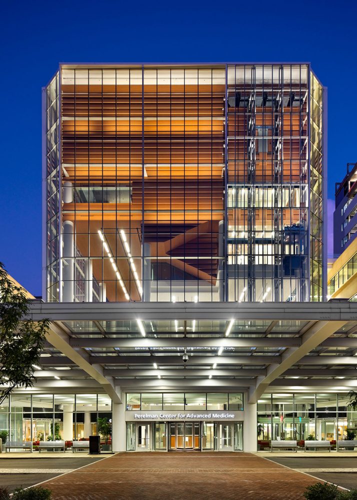 Siendo la etapa inicial, el Centro Perelman de Medicina Avanzada abre camino para futuras construcciones al crear un destacado atrio central y plaza pública y al mantener una elevación baja en las placas de piso del programa clínico para mitigar la congestión del complejo de cara a su futura expansión. La visibilidad que ofrece el atrio orienta a los visitantes, mientras que las zonas públicas y algunos espacios clínicos y oficinas se encuentran dispuestos a lo largo del perímetro del edificio para maximizar la iluminación natural y las vistas al exterior para visitantes y personal. Se exceptúan las habitaciones que requieren privacidad y un control meticuloso de la luz —salas de exploración, laboratorios y quirófanos—, que se encuentran en el centro de las plantas. Al ser el hospital universitario principal de la Universidad de Pensilvania, hay estudiantes, profesores e investigadores que usan y ocupan el complejo, además del personal, los pacientes, los visitantes y el público.