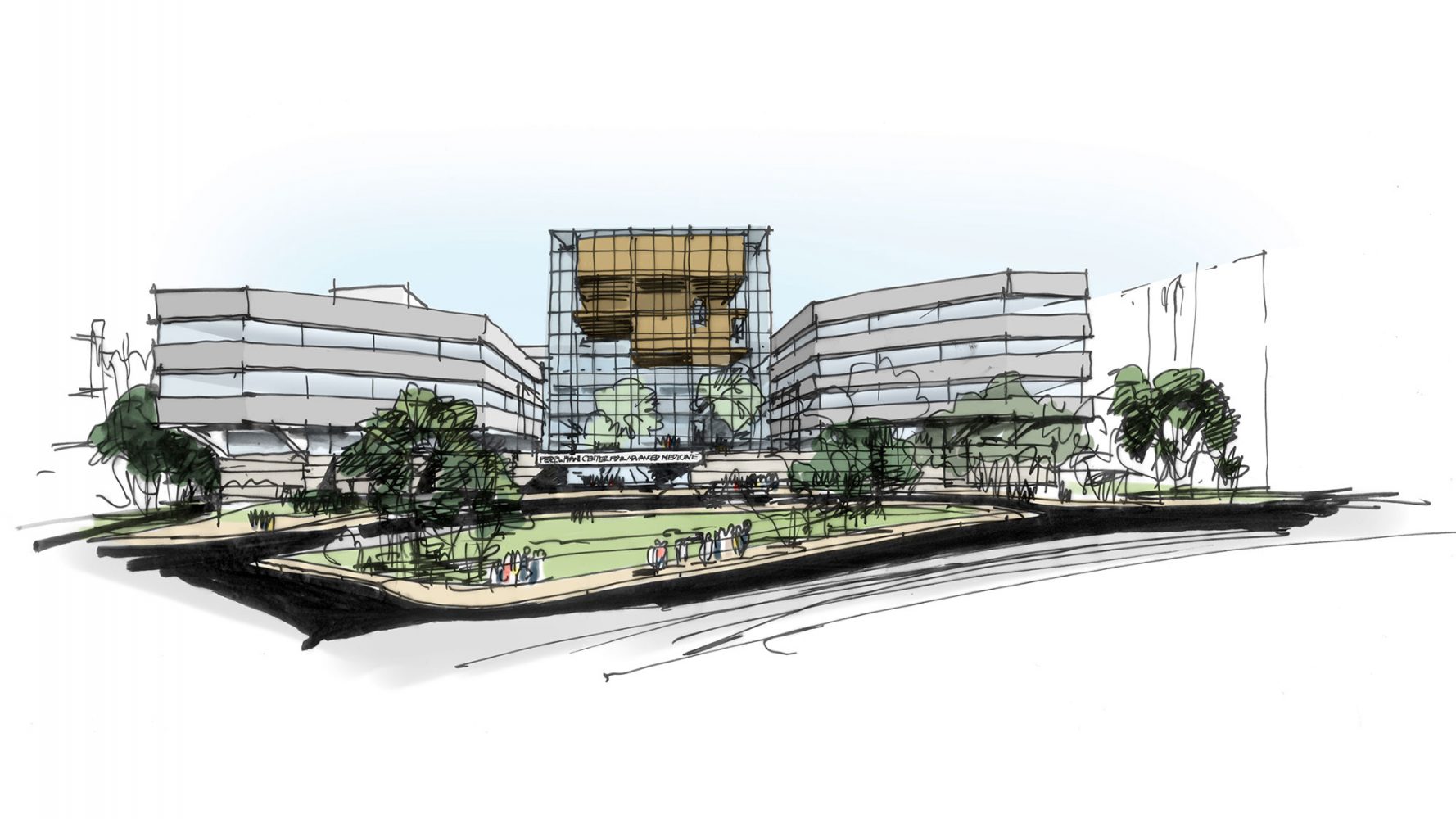 Si bien las opciones de planos directores difieren en la ubicación exacta y la distribución de masas de las ampliaciones, cada una de estas nuevas torres se dispone a lo largo del perímetro del complejo para poner de relieve y preservar la integridad del atrio como espacio público central y entrada principal. Los niveles inferiores de las nuevas torres cuentan con espacio de ampliación lateral para los programas clínicos, mientras que los niveles superiores albergan laboratorios de investigación, habitaciones para pacientes hospitalizados y otros usos, según sea necesario.